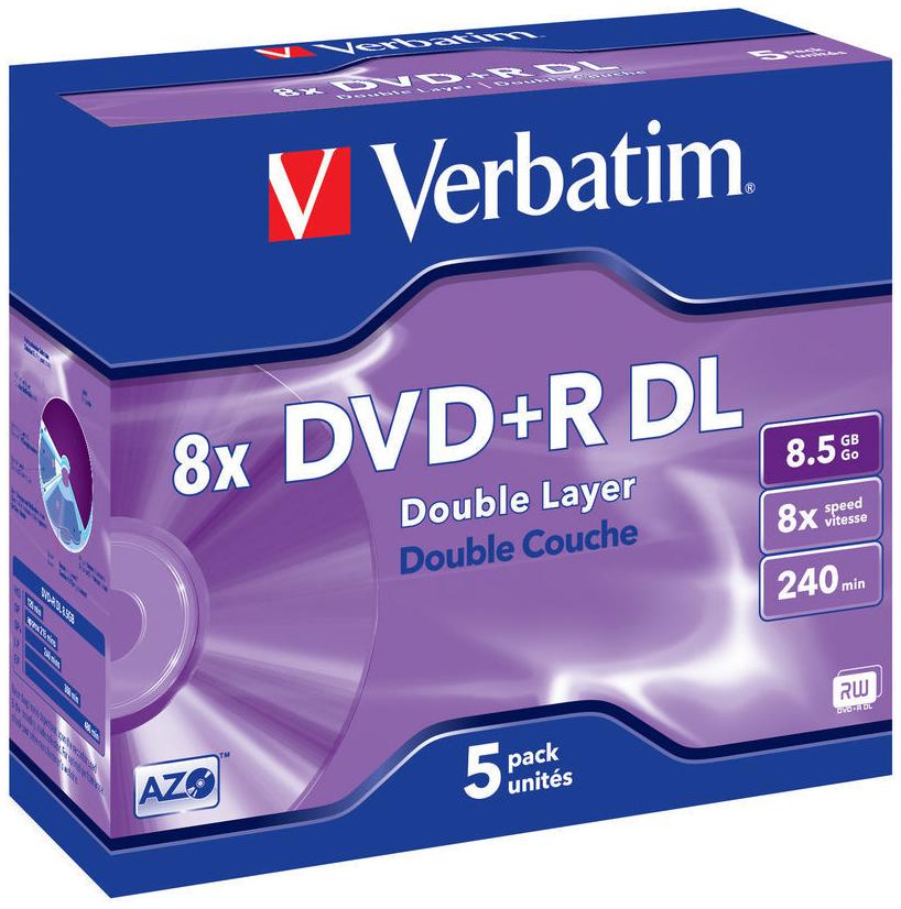 VERBATIM DVD+R DL 8.5 Go 8x 240 min (par 5, boitier jewel)