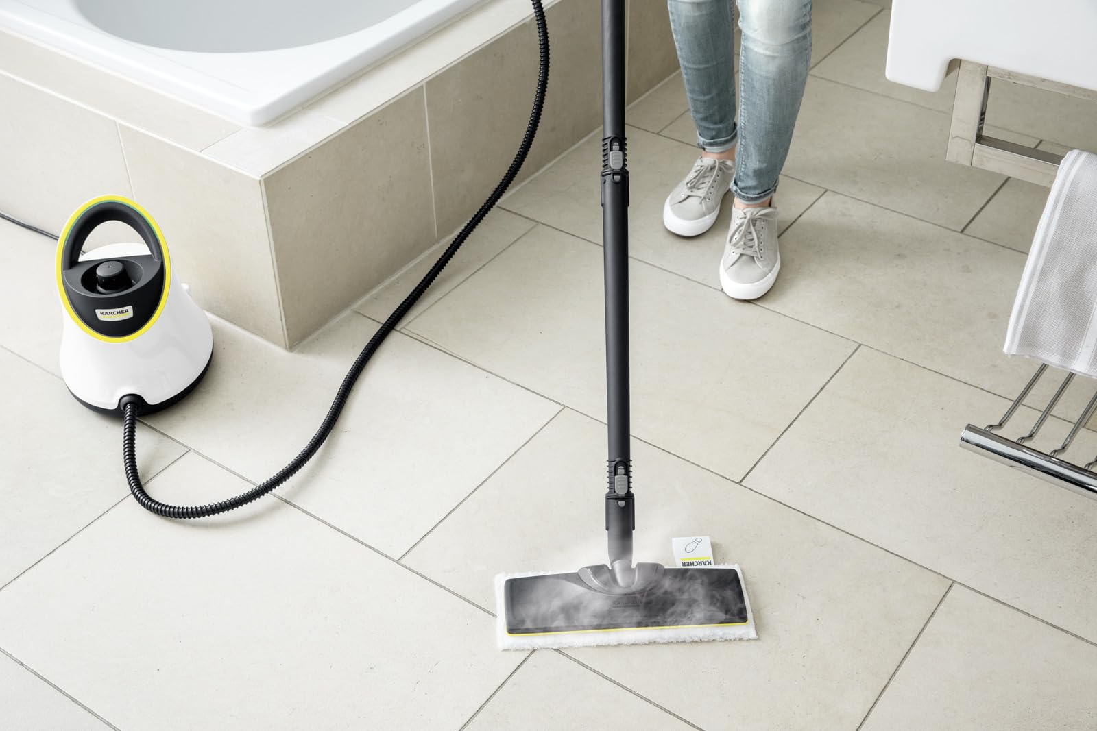 Avec un poids contenu d’environ 3,2 kg et une prise en main équilibrée, le SC 2 Deluxe EasyFix se manie avec aisance, réduisant la fatigue d’utilisation. Son câble de 4 mètres offre une grande liberté de mouvement, éliminant les contraintes de proximité d’une prise électrique. Compatible avec une large gamme d’accessoires Kärcher, il permet de nettoyer sols, vitres, carrelages, plans de travail et même les sanitaires, rendant votre quotidien plus sain et plus simple.Kärcher Dampfreiniger SC 2 Deluxe EasyFix
