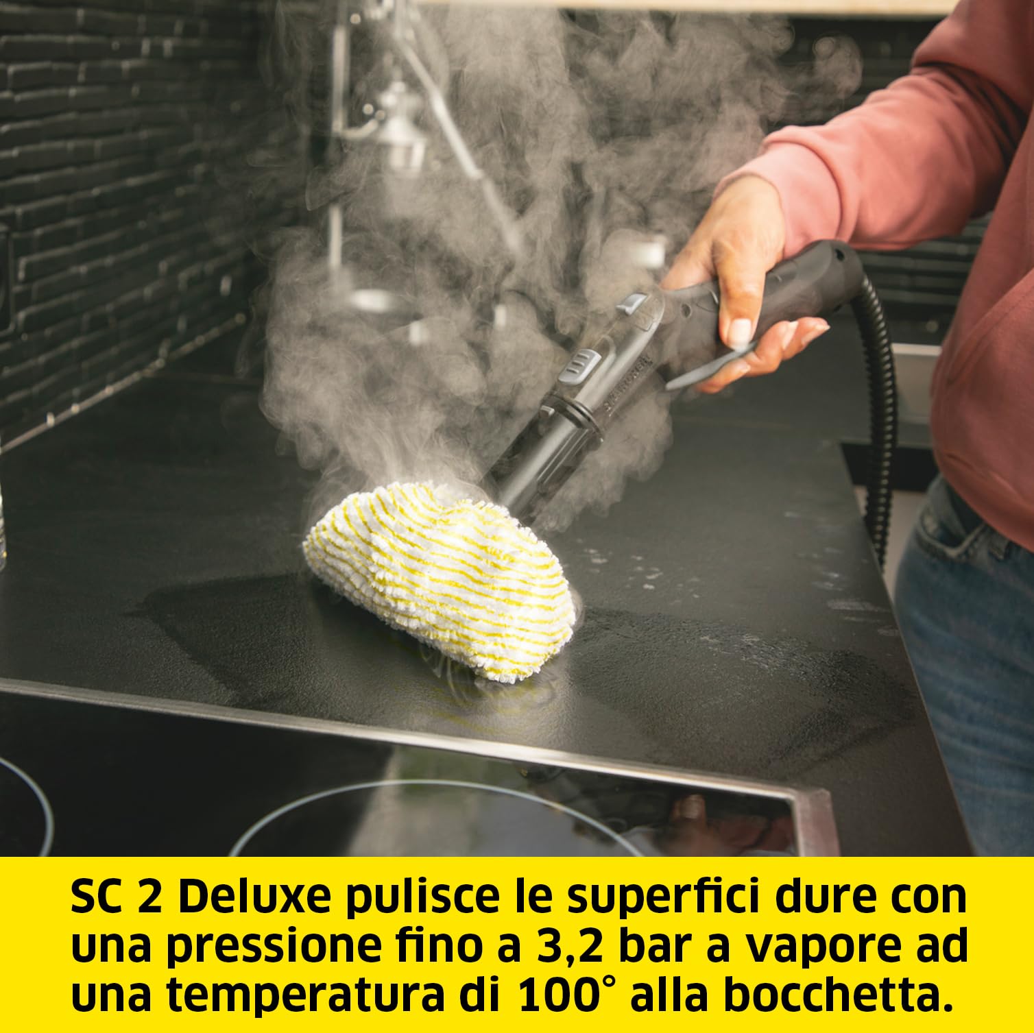Puissance électrique : 1.500 WattTemps de chauffe : 30 secondesAutonomie vapeur : 40 minutesCapacité du réservoir : 1 litrePoids : 3,2 kgLongueur du câble : 4 mètresTechnologie : EasyFix sans contact ✔ Pression de vapeur : environ 3,2 barsFabricant : Kärcher ✔ Modèle : Dampfreiniger SC 2 Deluxe EasyFix