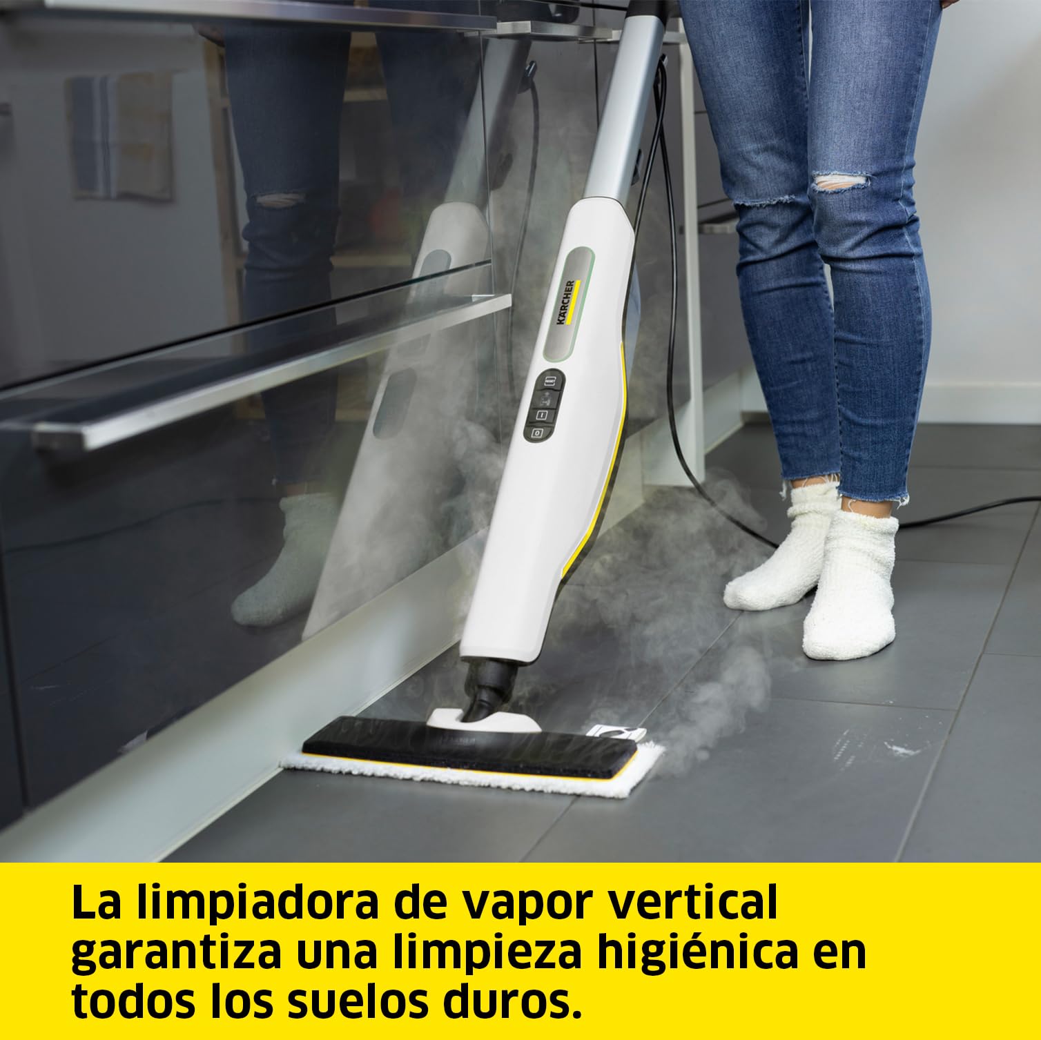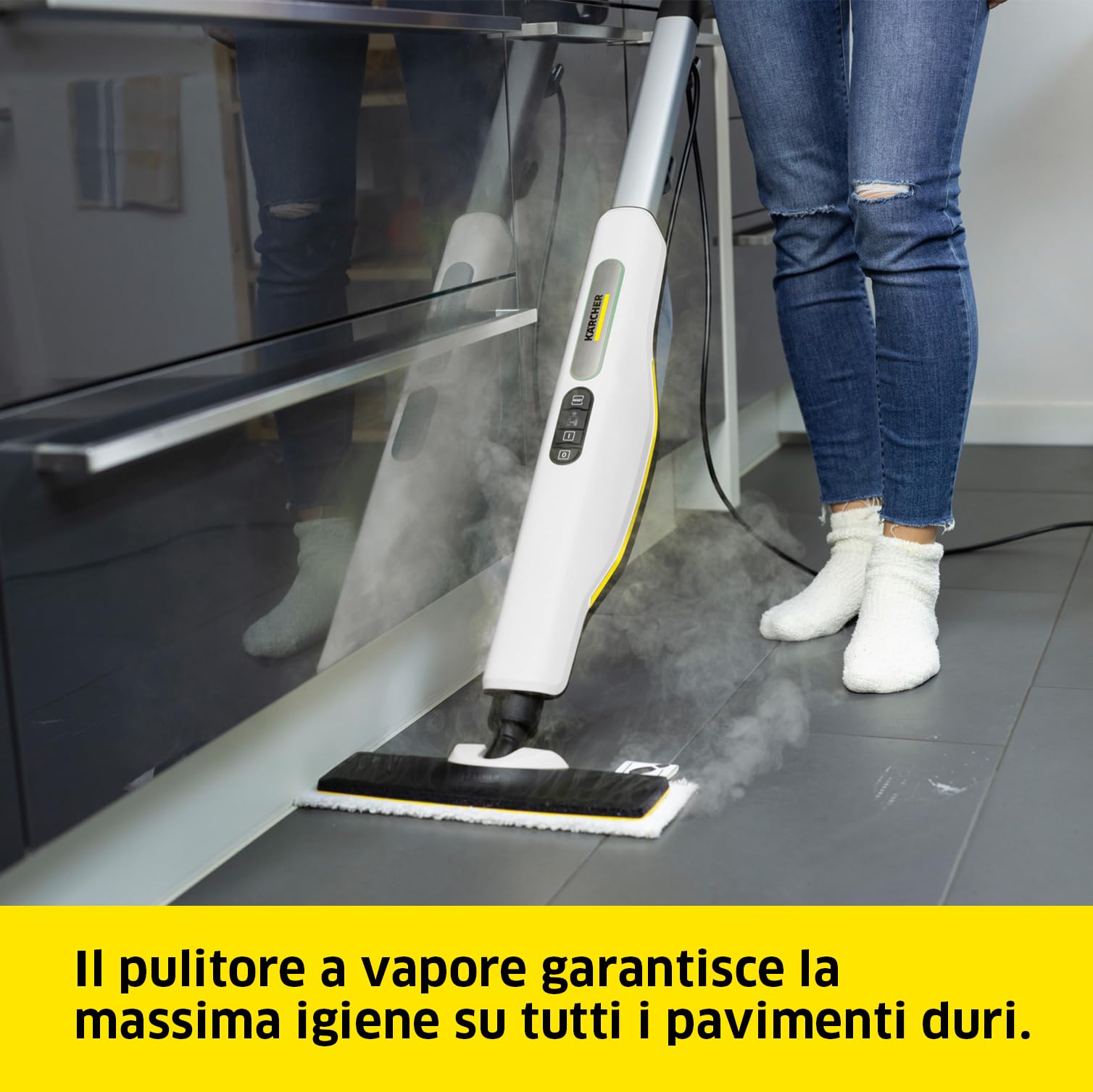 Cette action vapeur rend le Kärcher SC 3 idéal pour un nettoyage hygiénique des sols, carrelages, plans de travail et sanitaires, sans recours aux détergents.