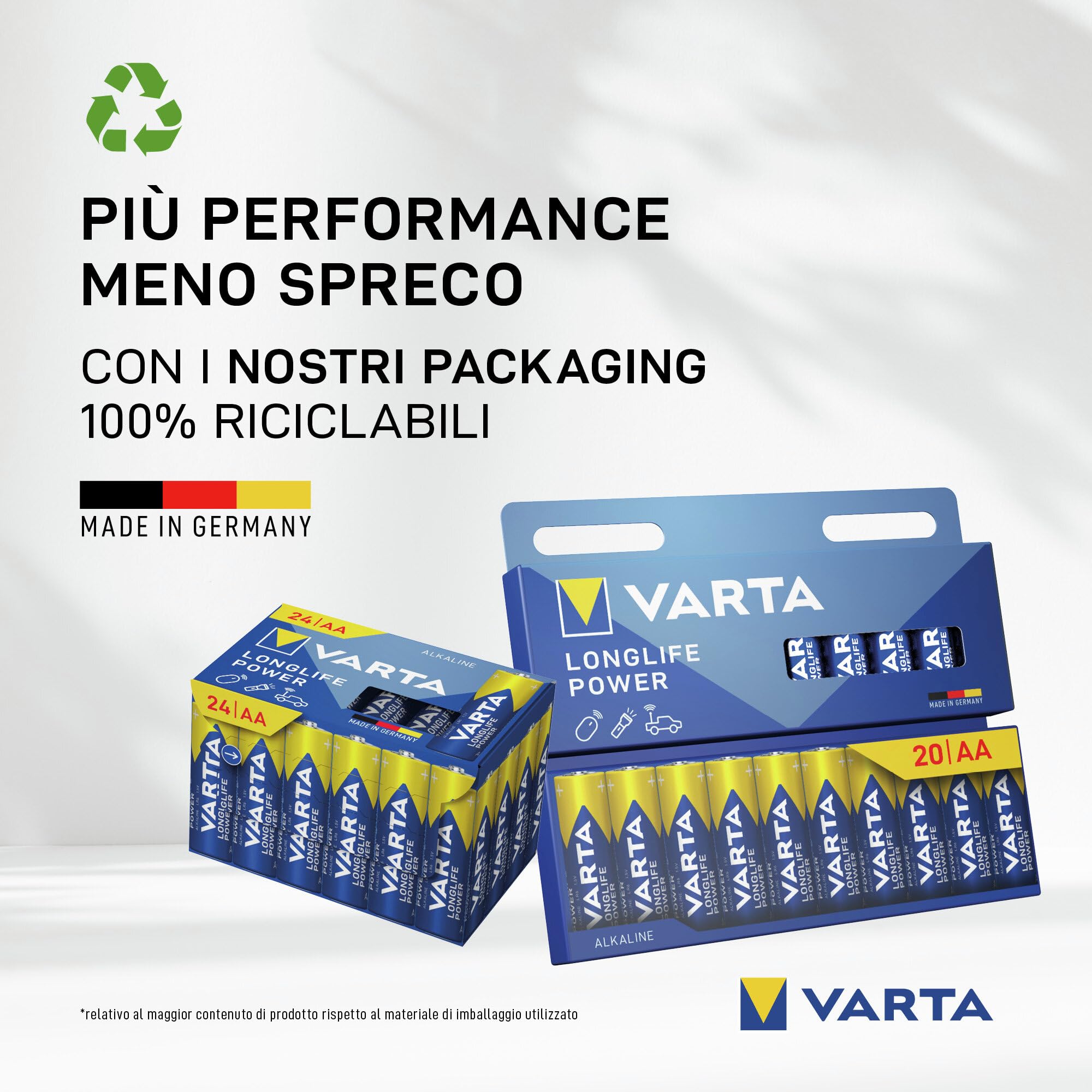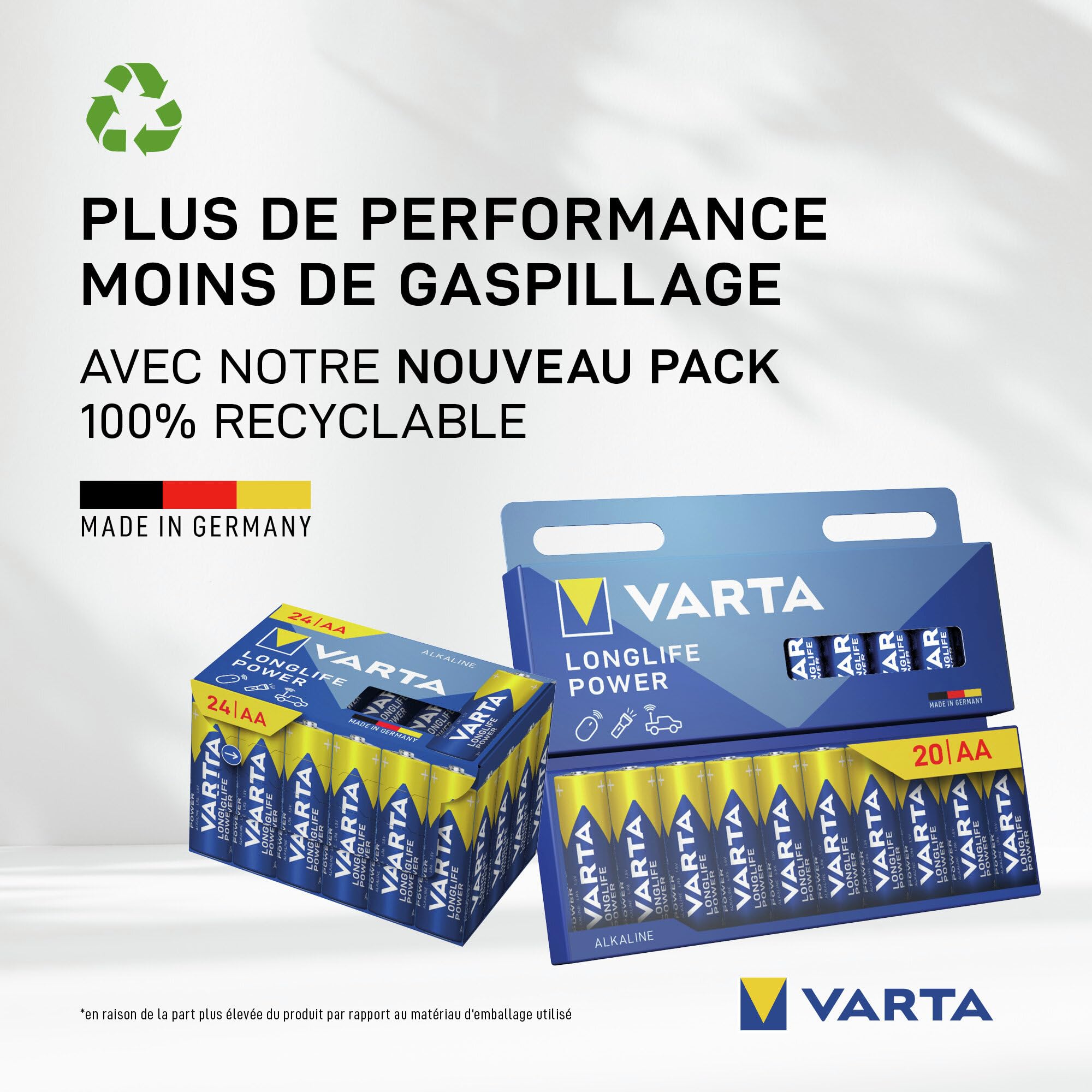 Conditionnée en pack de 24 pièces, cette batterie Varta est présentée sous une forme ergonomique facilitant le stockage et la distribution selon vos besoins. En outre, le fabricant s’engage dans une démarche écologique en limitant les matériaux plastiques et en favorisant un emballage recyclable. Cela contribue à réduire l’impact environnemental tout en vous offrant une batterie performante, fiable et responsable.