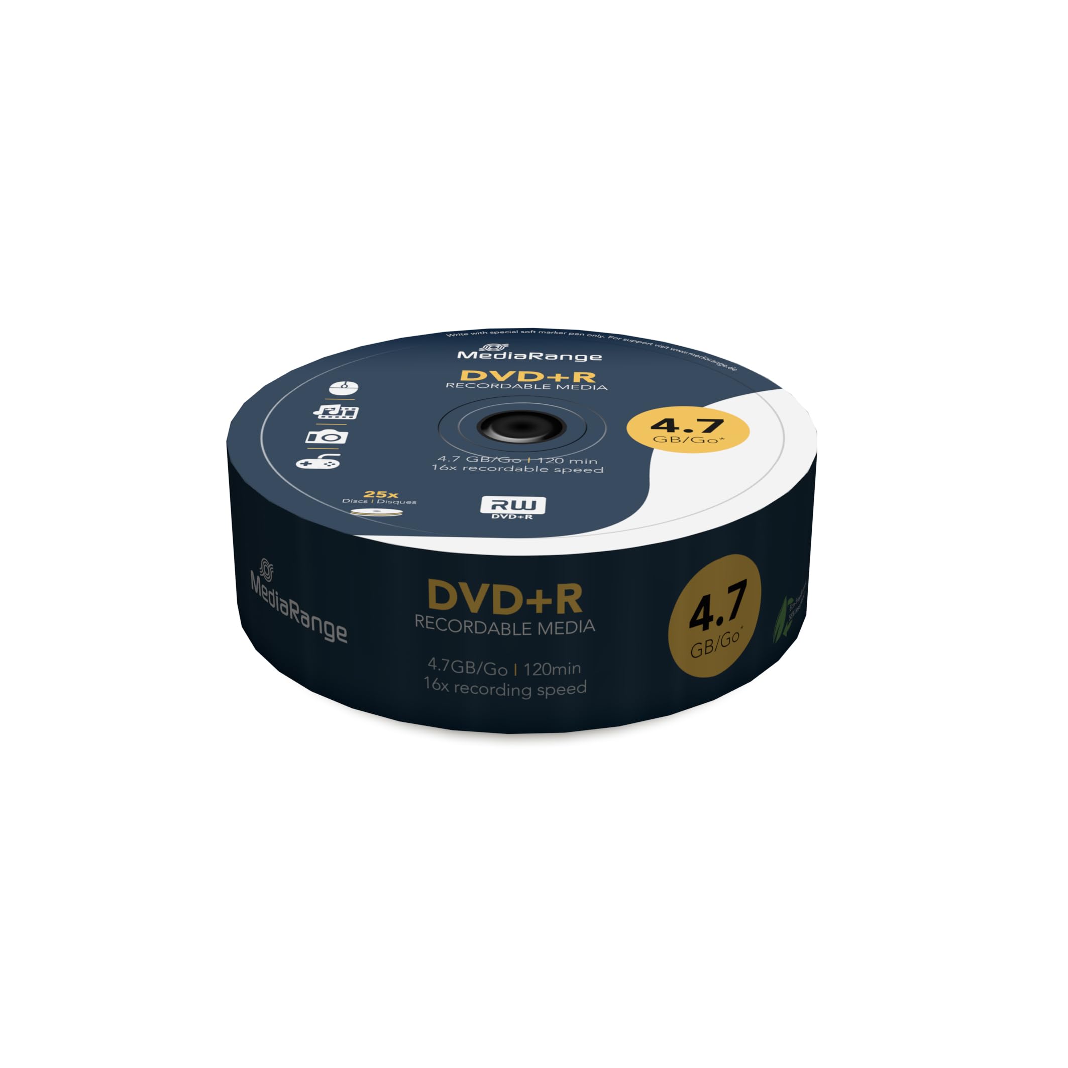 MediaRange est reconnu pour sa qualité constante des médias vierges, assurant une durée de conservation fiable dépassant souvent les 30 ans sous de bonnes conditions de stockage. Les disques sont conçus avec des matériaux résistants aux rayures et à la décoloration, assurant la pérennité de vos données. Cette robustesse garantit que vos sauvegardes restent intactes pour de longues années, un atout essentiel pour l’archivage.MediaRange DVD+R 4.7GB  25pcs Spindel 16x