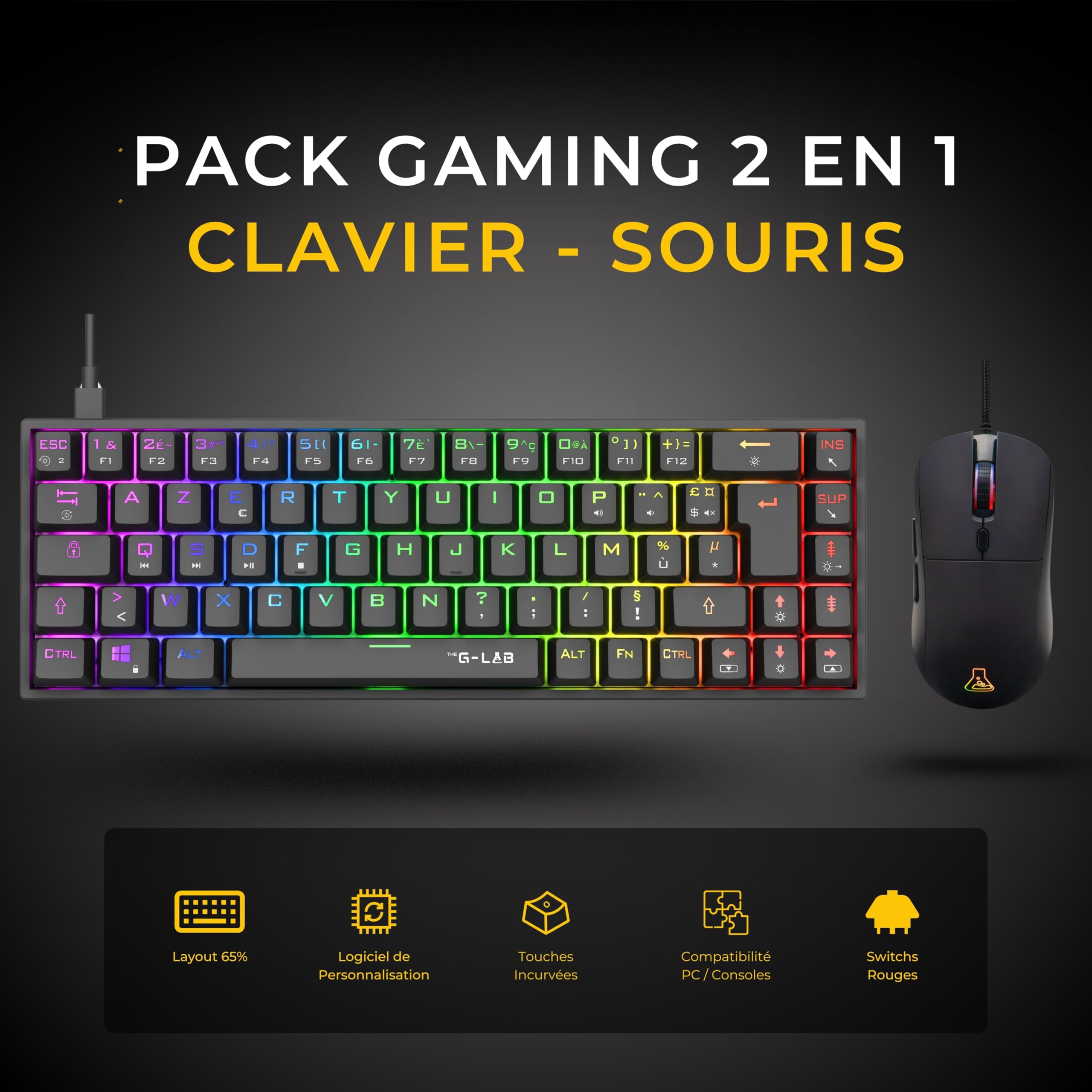 The G-Lab Combo Titanium (Noir) offre un format clavier réduit à 65% de la taille classique, éliminant tout ce qui est superflu sans sacrifier les fonctionnalités essentielles. Cette conception compacte facilite une posture naturelle des mains, idéale pour les longues sessions de jeu. Le positionnement optimisé des touches garantit une prise en main rapide et confortable, spécialement pensée pour les gamers exigeants, même dans les espaces restreints. Le clavier dispose d’une disposition AZERTY française, ce qui le rend parfaitement adapté au marché francophone. Son habillage noir mat assure une allure sobre et élégante qui s’intègre dans tout type de setup.