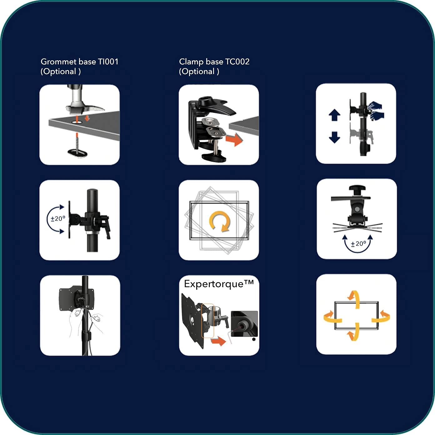 Un bureau ordonné est un bureau efficace. Le AAVARA Support à poser TS021 intègre un système de gestion des câbles discret mais très efficace. Des clips ou un canal dédié le long du bras et du mât permettent de dissimuler élégamment tous les câbles de votre moniteur, les maintenant hors de vue et à l'abri des enchevêtrements. Cette fonctionnalité améliore non seulement l'esthétique de votre poste de travail mais contribue également à prévenir les accidents et à faciliter le nettoyage. Le AAVARA Support à poser TS021 vous aide à maintenir un environnement de travail propre et professionnel, où chaque composant a sa place.
