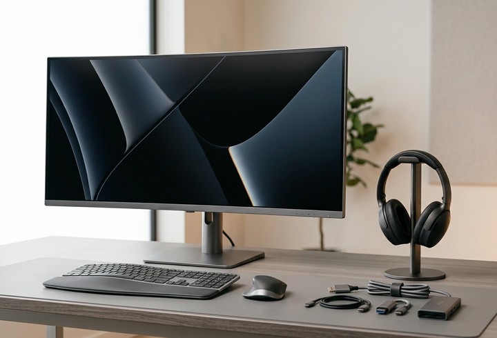 - Accessoires ergonomiques : Supports d'écran, câbles HDMI/DisplayPort et solutions de connectivité pour un setup optimisé.