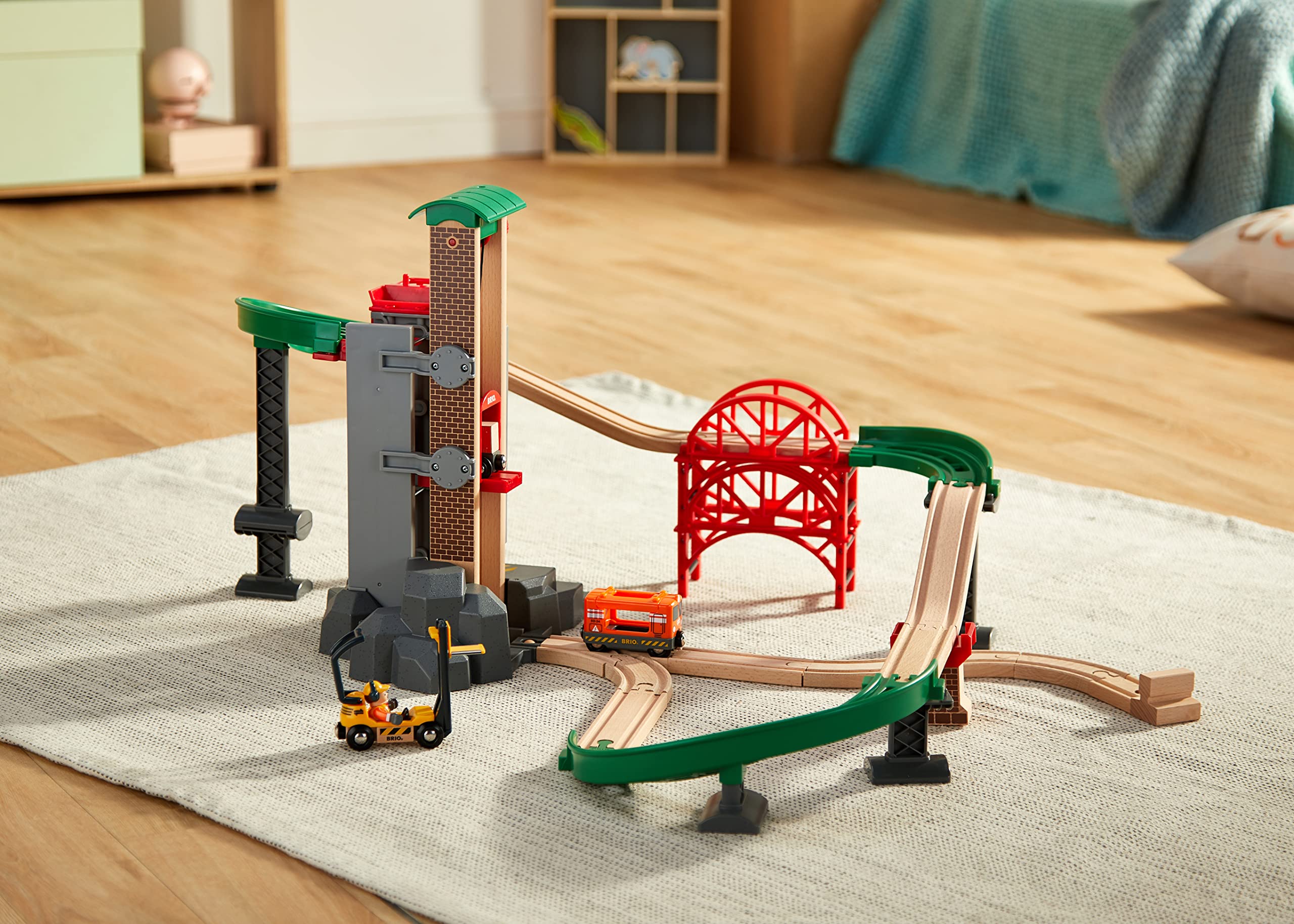 L’élément clé de ce set est son ascenseur motorisé intégré, capable de déplacer facilement les wagonnets entre plusieurs niveaux. Cet ascenseur renforce l’interactivité en simulant les opérations d’un véritable entrepôt. Sa mécanique fiable et silencieuse utilise un système à engrenages en plastique renforcé, permettant une montée et descente fluide. Cette fonction innovante stimule la coordination et l’apprentissage des principes mécaniques chez les enfants dès 3 ans.