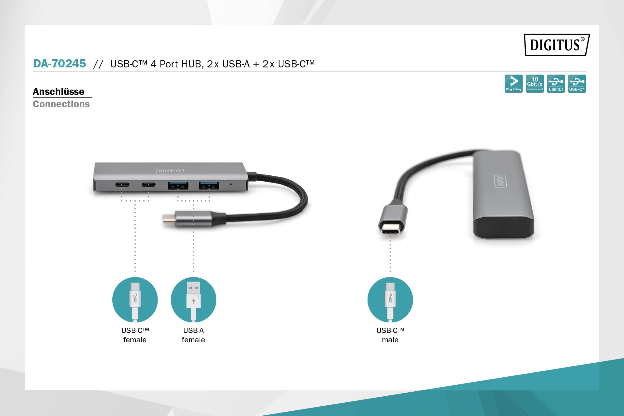 DIGITUS USB-C 4-Port 2x USB A + 2x USB-C