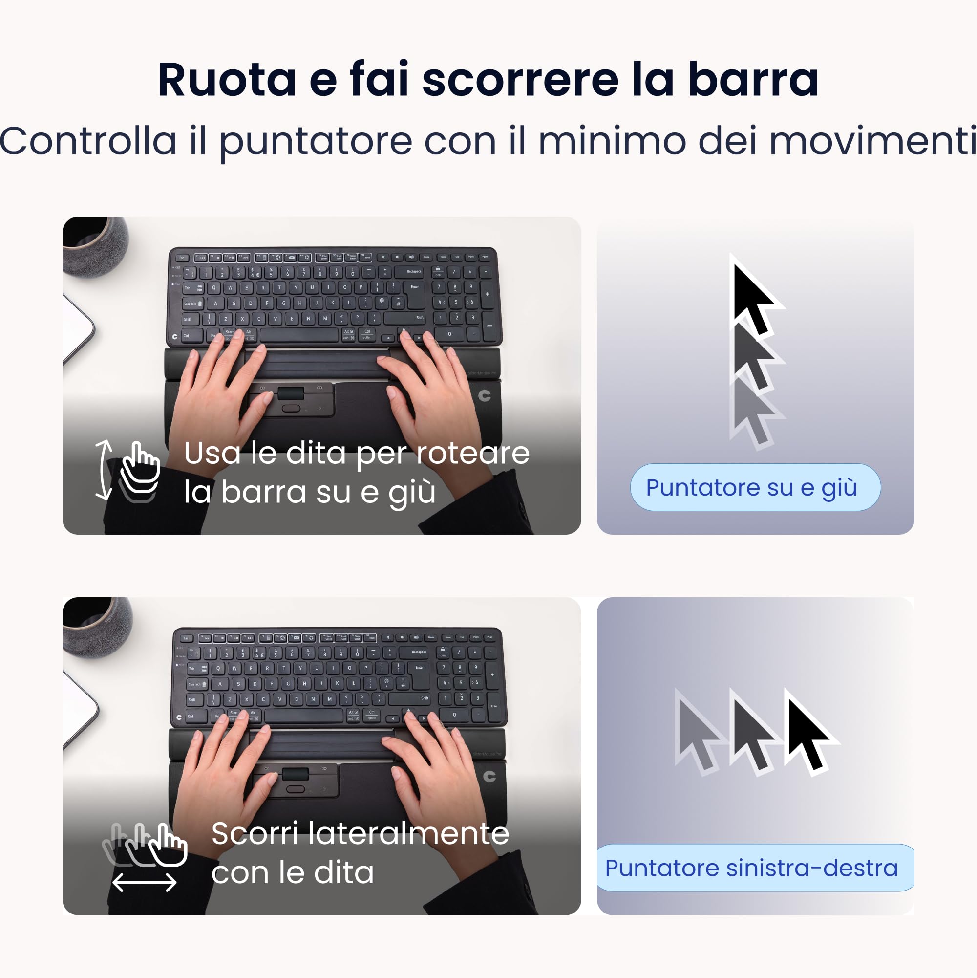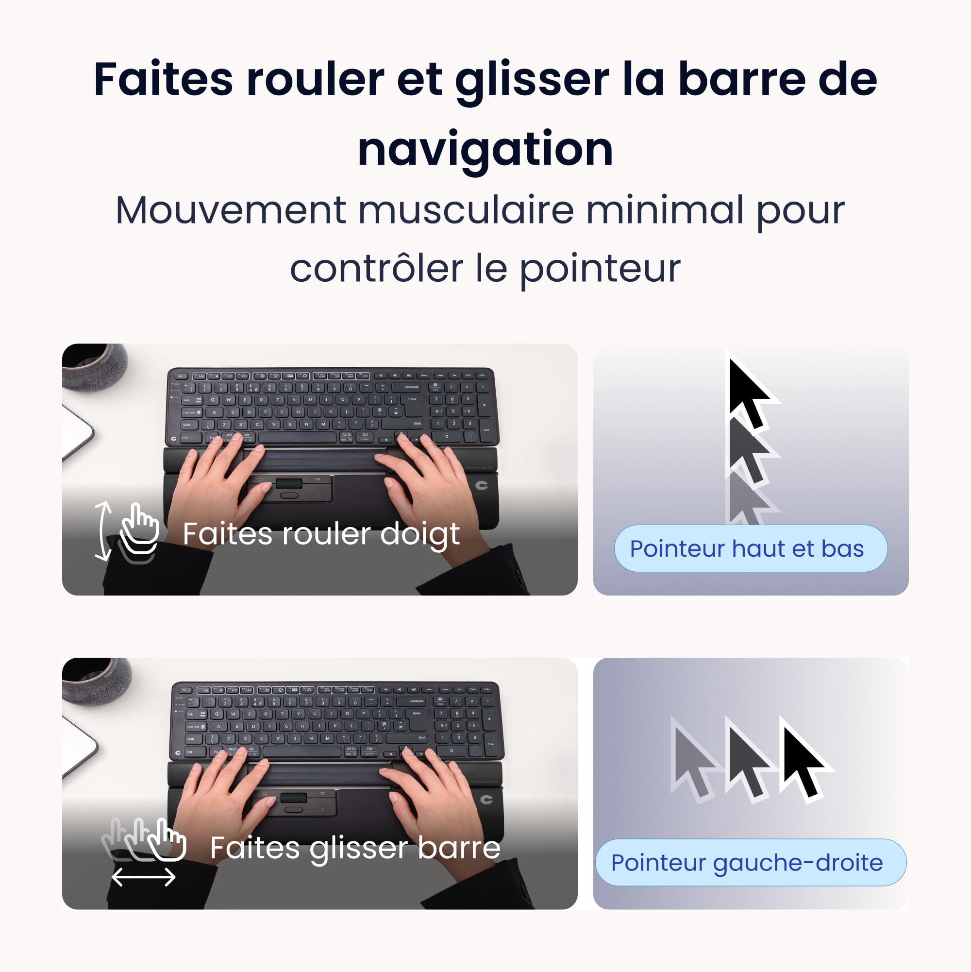 La Contour Design Souris centrée SliderMouse Pro slim, wireless propose un design unique qui place la main dans une position naturelle et centrée. Cette approche diminue considérablement les tensions au niveau du poignet et de l’avant-bras, réduisant ainsi les risques de troubles musculo-squelettiques (TMS). Le format allongé et fin permet un contrôle précis du curseur sans nécessiter de mouvements excessifs du bras. Ce modèle est idéal pour les professionnels et les utilisateurs sensibles qui recherchent confort et réduction de la fatigue lors d’une utilisation prolongée.