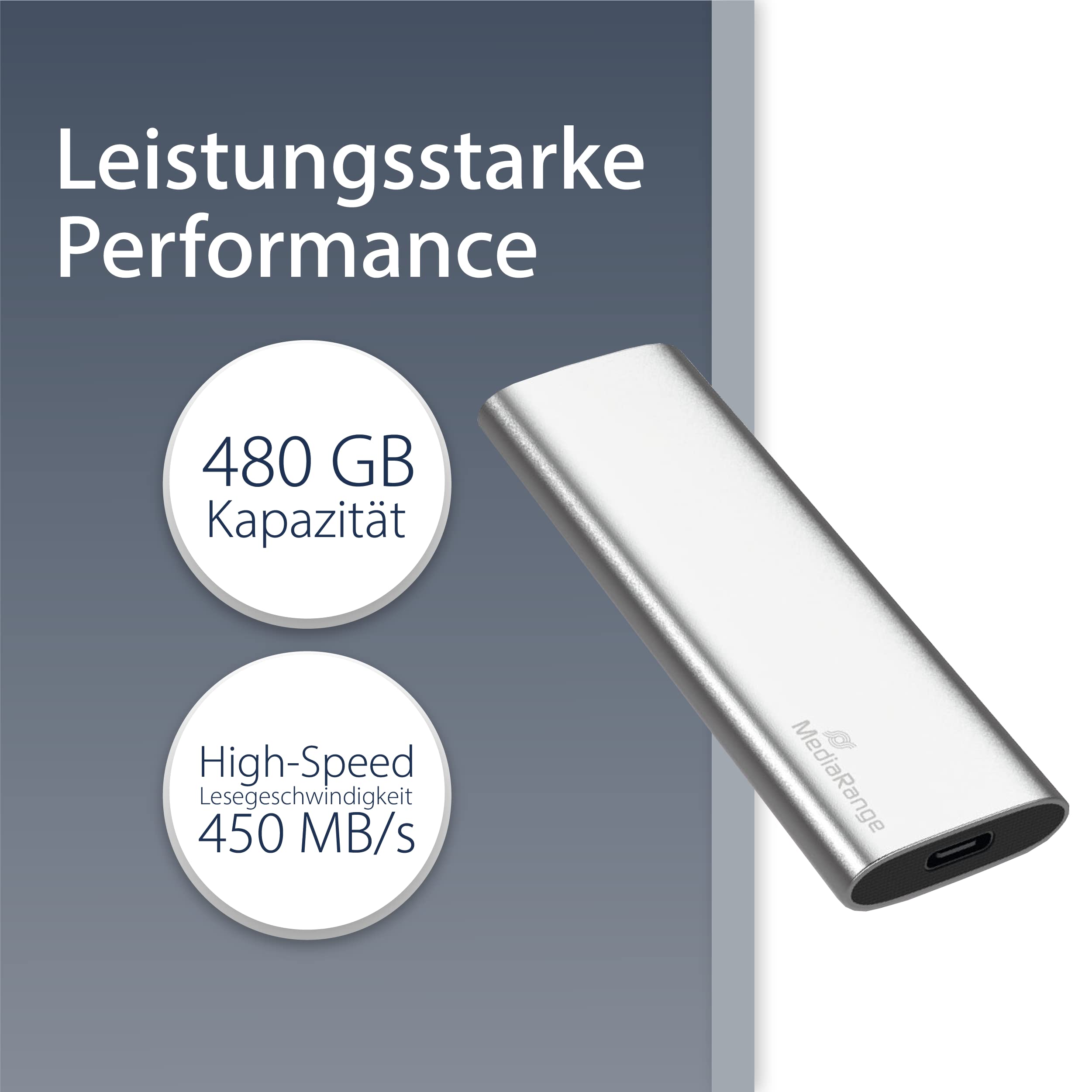 MediaRange Disque Dur SSD Externe 480 Go USB-C 3.2 Argent
