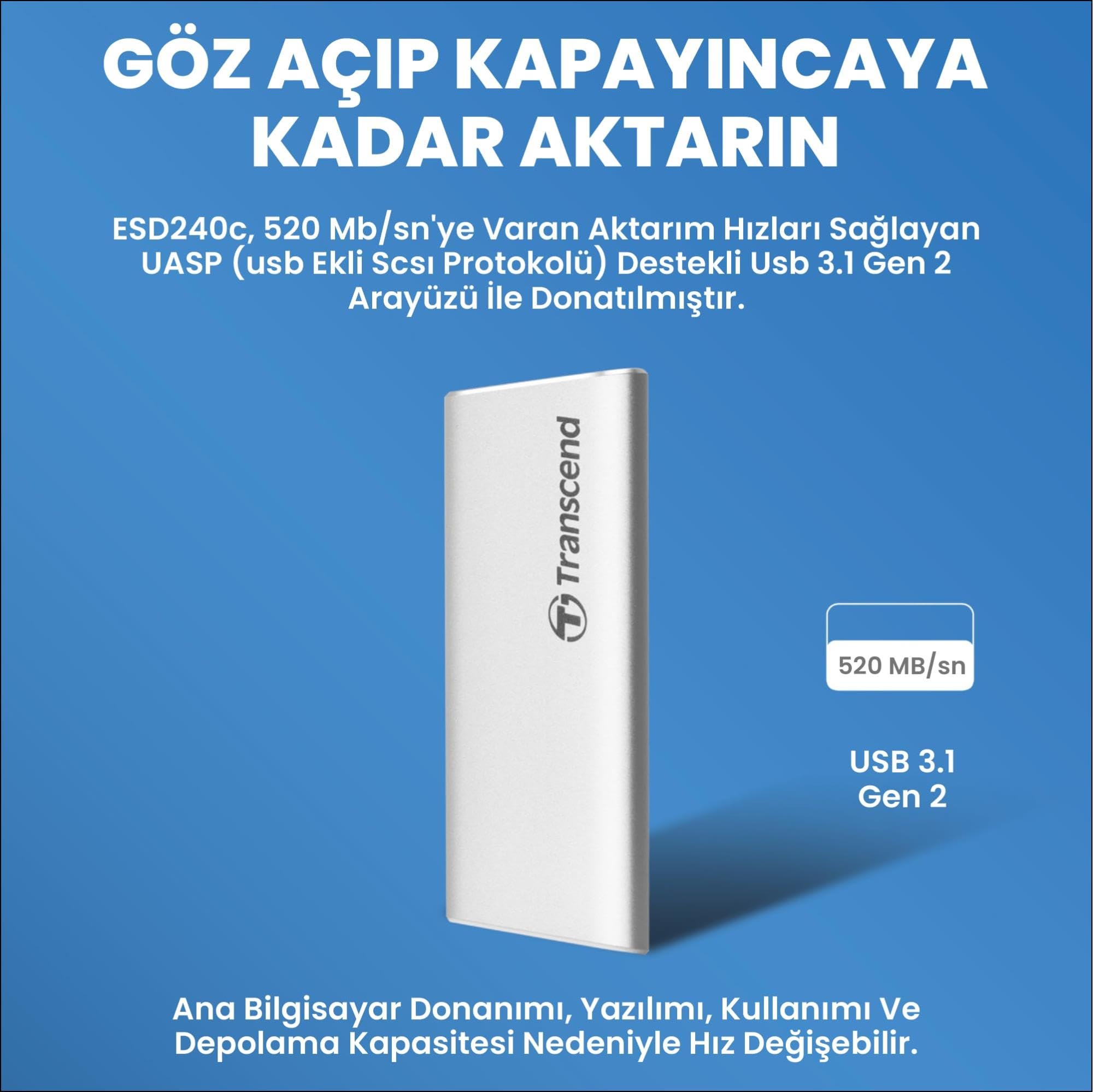 Que vous soyez un professionnel en déplacement ou un utilisateur domestique à la recherche d'une solution de stockage fiable, le Transcend ESD240C est le choix idéal pour sécuriser vos données en toute simplicité.