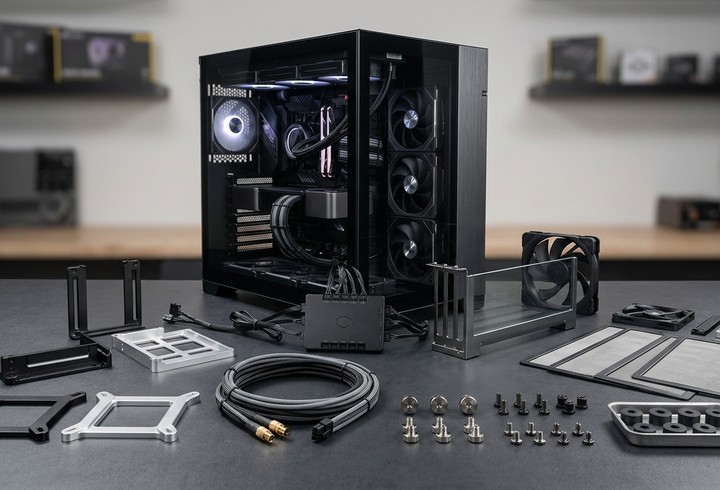 - Extensions et montage : Brackets d’extension pour boîtiers SSUPD, supports pour clients légers HP et accessoires spécifiques pour ASRock Deskmini, incluant des kits LED adressables.