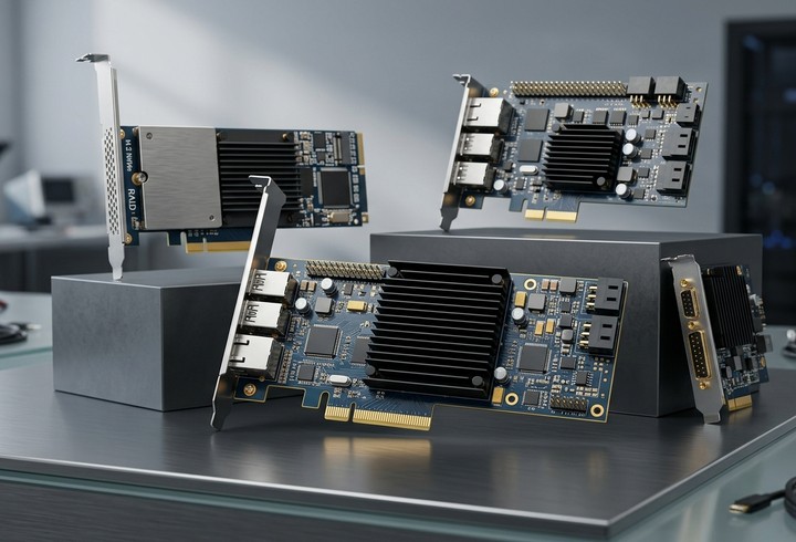 - Contrôleurs de stockage : Améliorez votre productivité avec des cartes Fusion SSD RAID, des interfaces M.2 NVMe multi-slots et des adaptateurs PCIe haute performance.