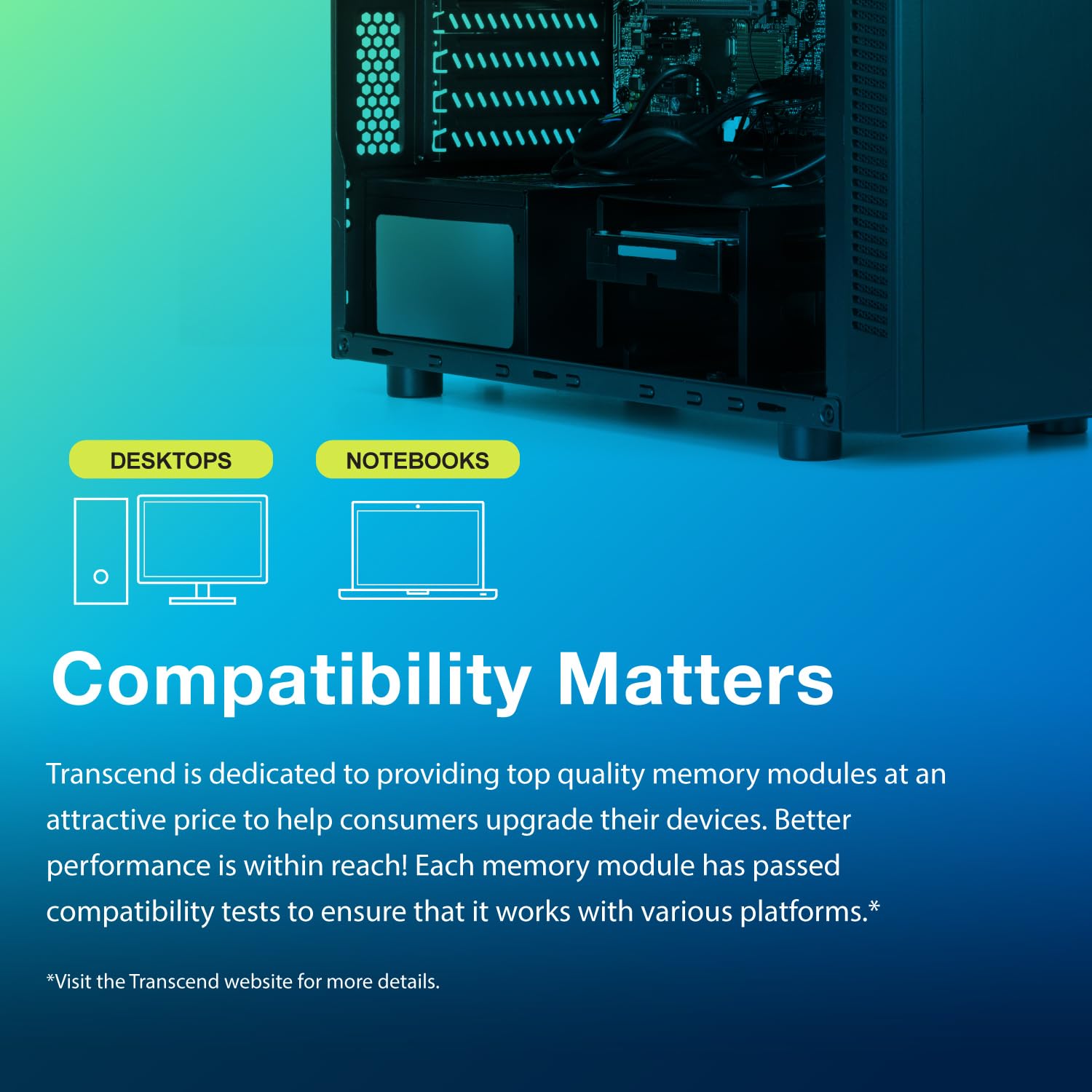 La barrette TRANSCEND 8Go JM DDR4 3200 U-DIMM se monte aisément dans les slots DDR4 libres des cartes mères récentes, sans nécessiter de configurations particulières dans le BIOS. Elle est compatible avec la majorité des architectures récentes, offrant ainsi une solution de mise à niveau rapide et économique. Sa clé DIMM assure un encastrement parfait et évite tout risque d’endommagement lors de l'installation.TRANSCEND 8Go JM DDR4 3200 U-DIMM