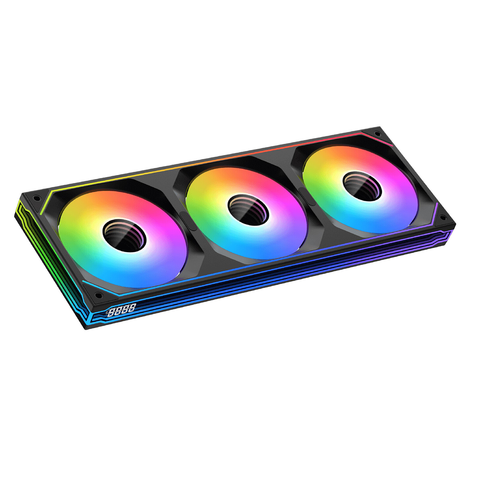 Chaque ventilateur du Xigmatek Infinity SF360 Digital est équipé de LED ARGB, capables d’afficher une palette riche de couleurs personnalisables. Le mini contrôleur ARGB intégré permet de synchroniser l’éclairage de l’ensemble facilement via un câble unique, compatible avec la majorité des cartes mères prenant en charge les normes ARGB 5V 3 broches. Les utilisateurs peuvent choisir parmi différents modes lumineux, tels que la respiration, l’effet arc-en-ciel ou l’éclairage statique, offrant ainsi un effet visuel saisissant qui s’adapte parfaitement à l’ambiance de votre setup. Ce contrôle précis permet aussi d’optimiser la consommation énergétique de l’éclairage : un vrai plus pour les amateurs de customisation fine.