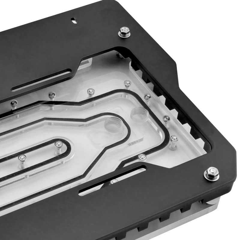 Singularity Computers a utilisé un mélange d’aluminium usiné CNC de haute qualité et de plexiglas acrylique renforcé pour cette plaque. Le résultat offre une résistance à la flexion et aux chocs tout en permettant une visibilité optimale des flux de liquide. L’utilisation de matériaux légers, mais solides, garantit une installation pérenne et sans déformations même après plusieurs années d’usage intensif.