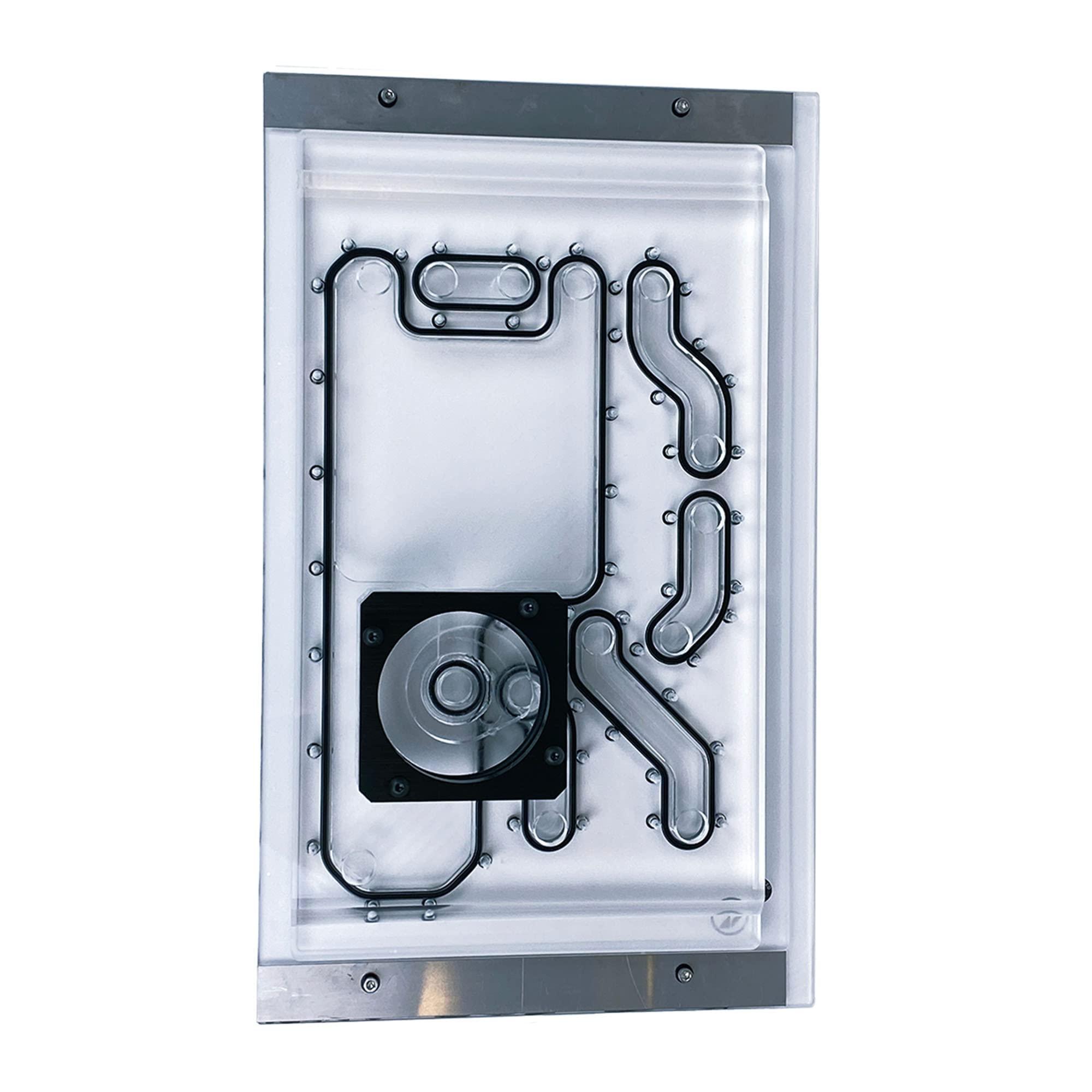 La structure du Stealkey Customs Lian Li O11D Mini Front MK2 D5 Distroplate est construite en acrylique de haute qualité, reconnu pour sa robustesse et sa grande transparence. Ce matériau offre une excellente résistance aux températures élevées et aux contraintes mécaniques, nécessaires dans un environnement de watercooling. Par ailleurs, l’acrylique apparaît parfaitement lisse et poli, permettant une visualisation claire du liquide en mouvement. Ce choix de matériau procure également une facilité d’entretien et une durabilité accrue, garantissant que le plateau restera impeccable malgré les années. Sa teinte blanche ajoute une luminosité qui pourra être sublimée par un éclairage RGB pour accentuer l’effet visuel.