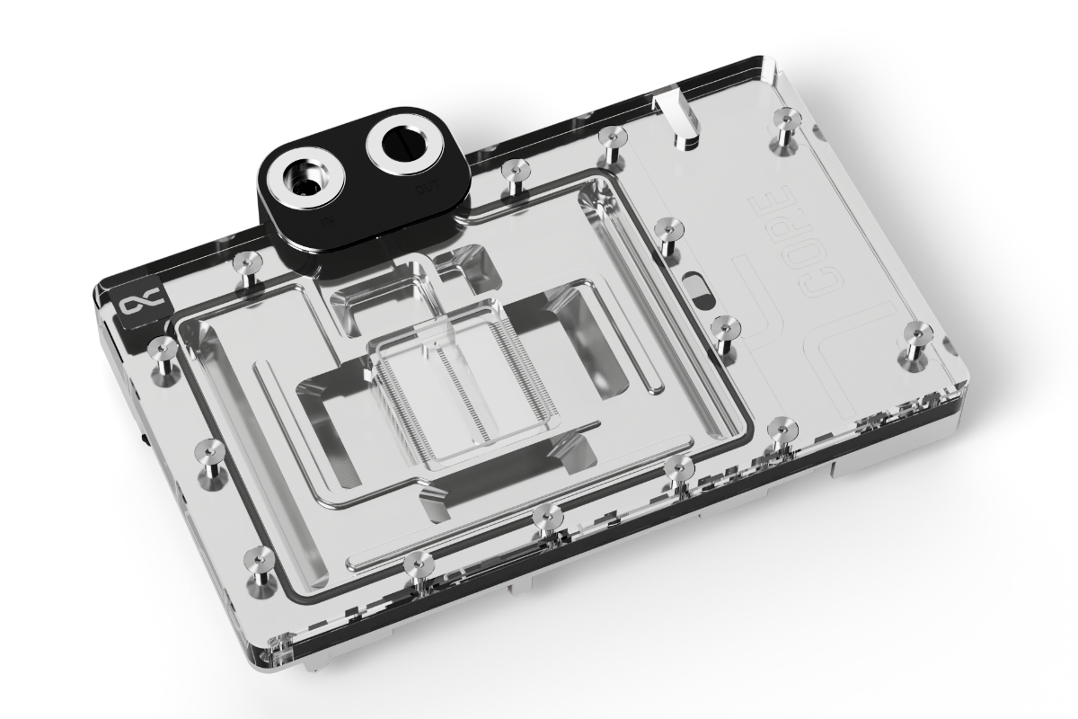 Un élément clé de ce waterblock est la backplate en métal intégrée, qui apporte un support renforcé à la carte graphique tout en contribuant à la dissipation de la chaleur du dos du PCB. Fabriquée avec précision, la backplate combine solidité et esthétisme en offrant une finition nickelée assortie au reste du bloc. Cette configuration limite également les déformations du circuit imprimé dues à la chaleur et aux manipulations fréquentes, tout en améliorant la répartition de la température grâce à un transfert thermique passif.