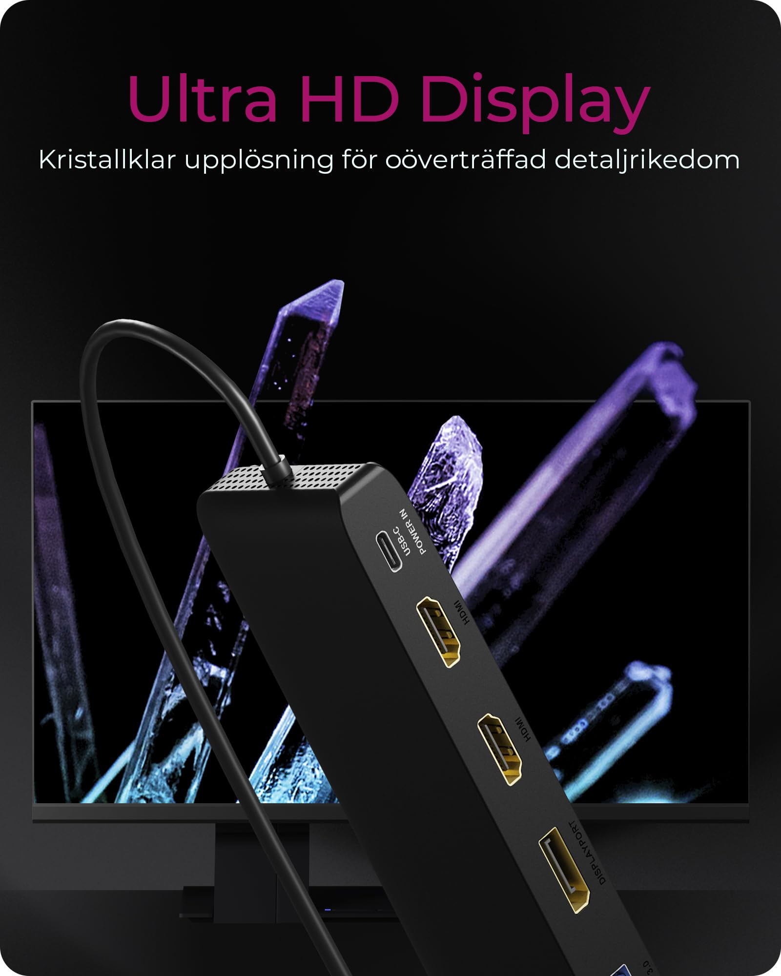 Le dock présente un format compact favorisant une installation discrète et soignée sur le bureau. Sa coque en aluminium agit comme un dissipateur thermique naturel, évitant ainsi toute surchauffe même en usage intensif.