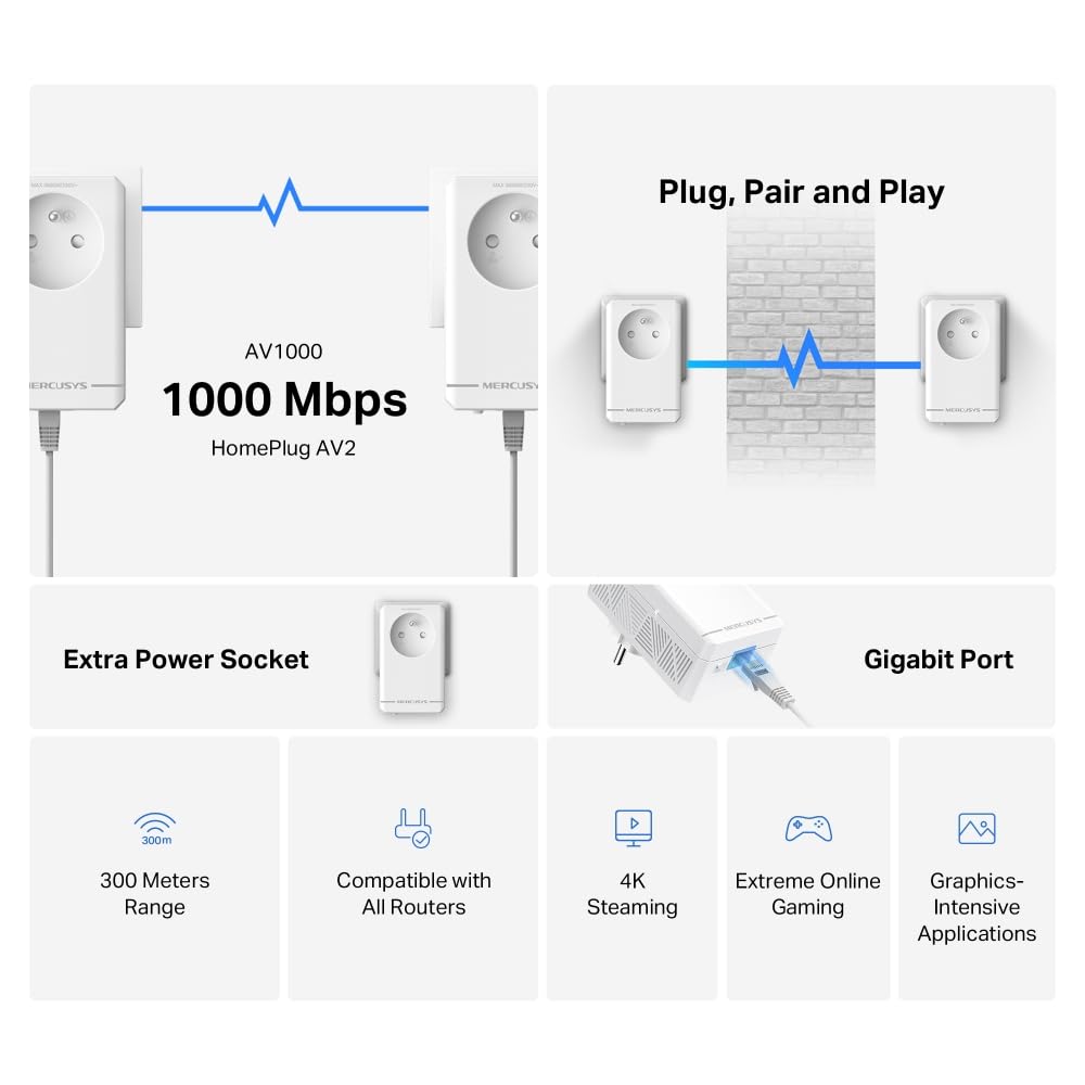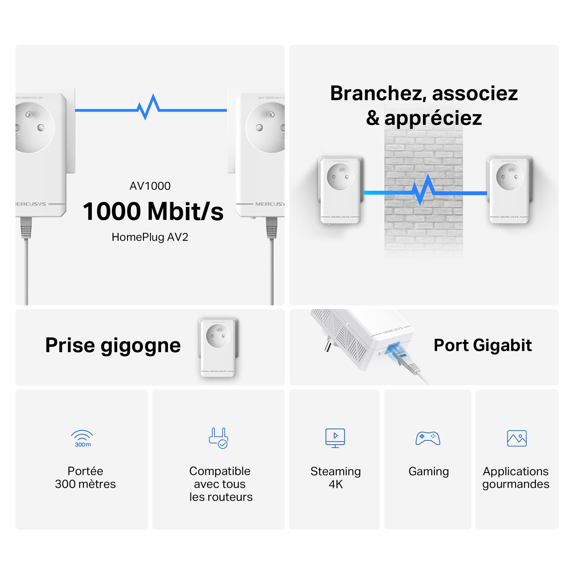 ⚙ Adaptateurs CPL AV1000 avec prise gigabit intégrée