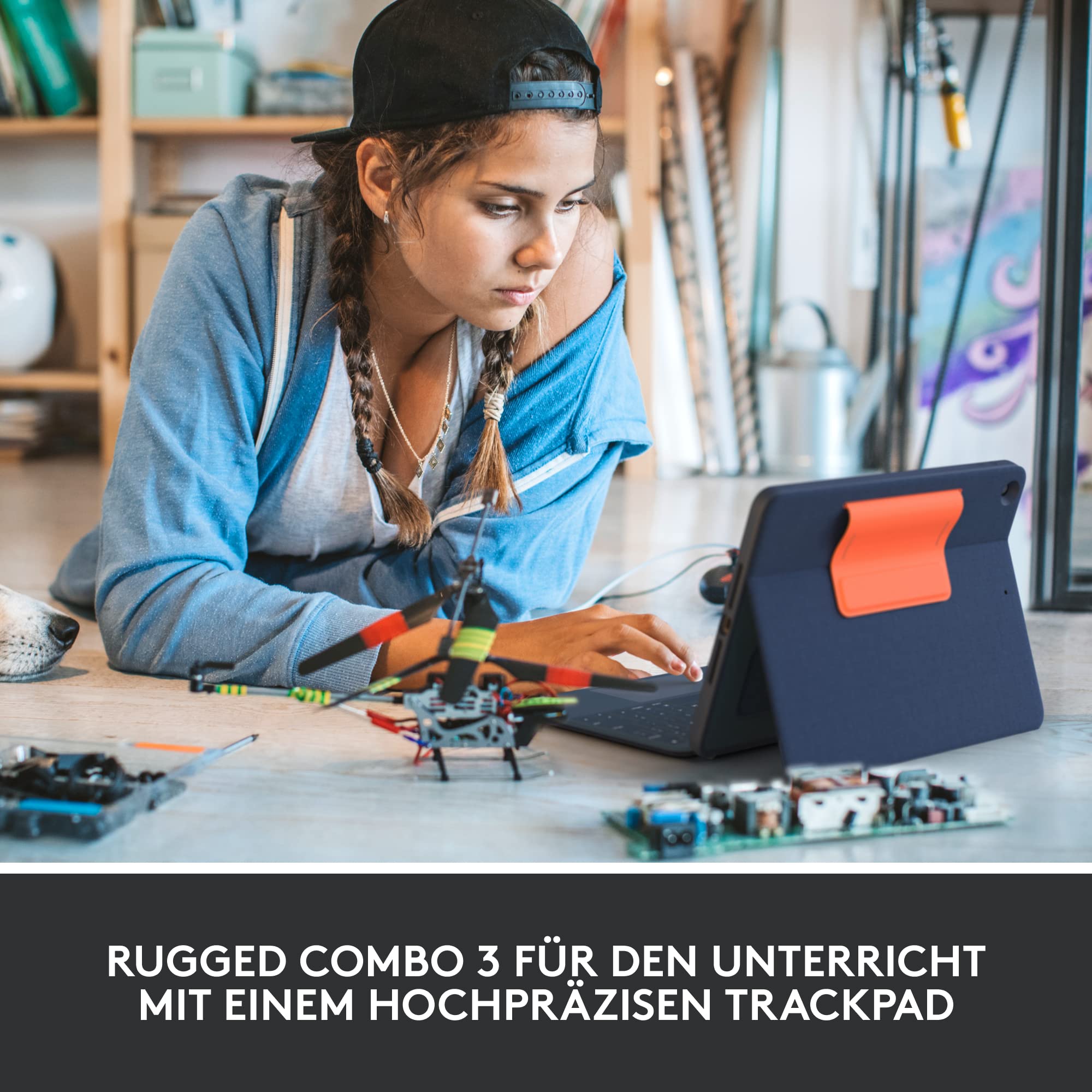 Le Logitech Logitech Rugged Combo 3 Touch for Education offre une intégration parfaite d’un clavier complet et d’un trackpad réactif qui fonctionne via l’Apple Smart Connector. Conçu pour répondre aux exigences des environnements scolaires, ce combo permet une saisie fluide et précise, réduisant les délais d’activation grâce à une connexion instantanée. Les touches ont été calibrées pour offrir une frappe confortable et silencieuse avec un retour tactile optimal. Ce système de commande hybride combine modernité et praticité, permettant aux étudiants de profiter d’un confort inégalé dans leurs activités quotidiennes. ➡ La proximité entre les éléments favorise une saisie rapide et une réactivité accrue, essentielle en contexte éducatif.