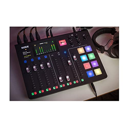 RODE RODECaster Pro - Studio de production pour podcast - 4 entrées micro XLR - 8 pads programmables - 4 sorties casque - USB-C / Micro SD Le RØDECaster Pro™ est la solution tout-en-un la plus puissante au monde pour le podcasting. Conçu pour offrir une qualité de son exceptionnelle et des fonctionnalités étendues tout en étant incroyablement facile à utiliser, c'est l'outil ultime aussi bien pour les débutants que pour les professionnels. Doté de quatre entrées micro avec des préamplis de qualité studio pour enregistrer un son cristallin, de canaux smartphone, USB et Bluetooth pour connecter facilement des invités à distance, de huit pads sonores pour lire de la musique et activer des effets sonores, d'un puissant traitement audio par une simple pression d'un bouton et bien plus encore, le RØDECaster Pro est tout ce dont vous aurez besoin pour créer des podcasts extraordinaires. Le RØDECaster Pro est la solution tout-en-un la plus puissante au monde pour les podcasts et le streaming en direct Il offre une qualité audio exceptionnelle et des fonctionnalités étendues tout en étant incroyablement facile à utiliser, en en faisant l'outil ultime pour les débutants et les professionnels Comprend quatre entrées microphone avec des préamplis de qualité studio pour enregistrer un son cristallin, ainsi que des canaux smartphone, USB et Bluetooth pour intégrer sans problème des invités à distance dans votre podcast ou votre diffusion en direct Huit pads sonores programmables, avec huit banques disponibles vous permettant de charger jusqu'à 64 sons pour une lecture instantanée lors de votre podcast ou diffusion Puissant traitement audio intégré, y compris les légendaires effets APHEX Aural Exciter et Big Bottom offrant un son 'prêt pour la diffusion' qui vous fait sonner comme un million de dollars - sans configuration complexe nécessaire
