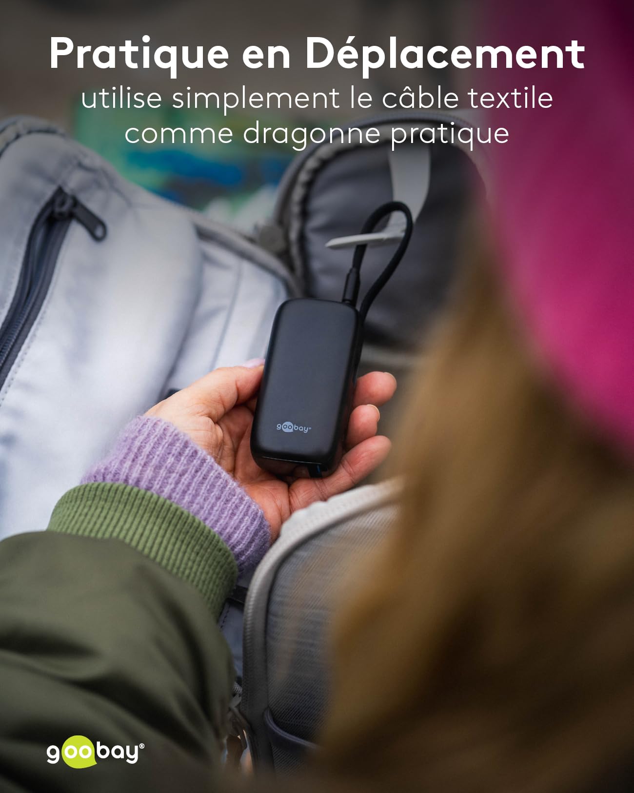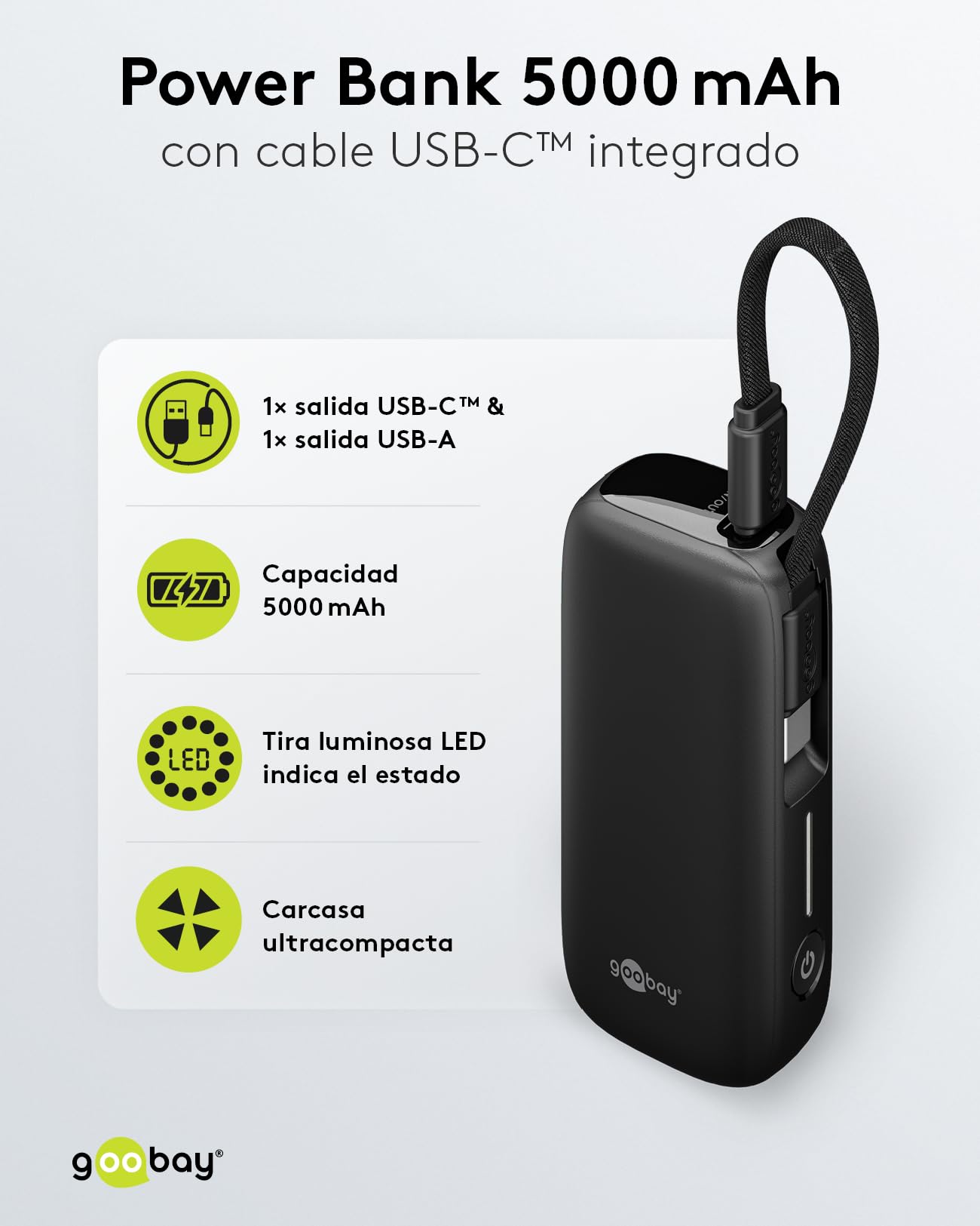 Goobay Batterie Externe 5 000 mAh Câble USB-C Intégré 20W