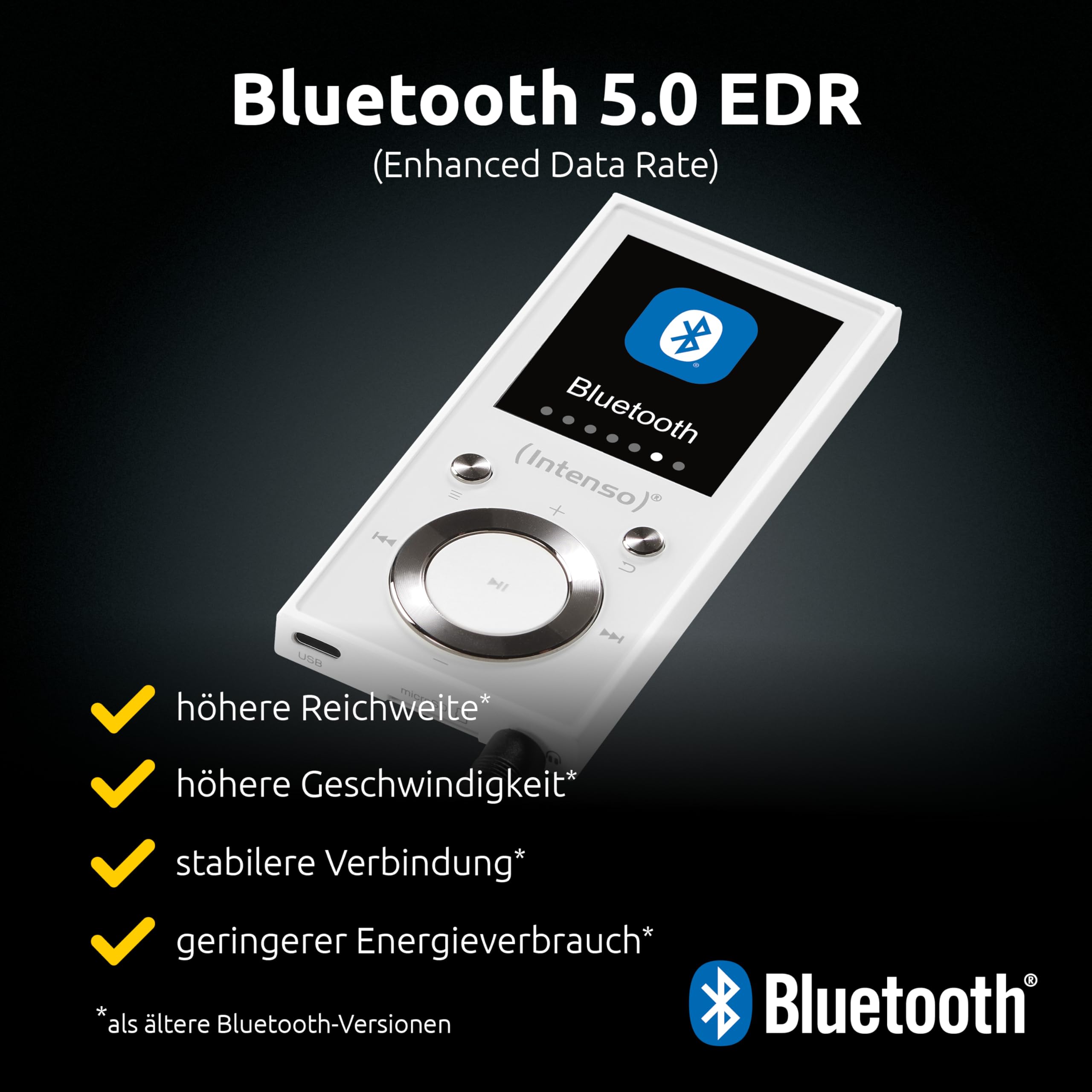 Le modèle INTENSO Video Scooter intègre la technologie Bluetooth 5.0, assurant un transfert rapide et stable des données audio. Grâce au Bluetooth, il est facile de connecter des écouteurs sans fil ou des enceintes externes, offrant une expérience sans câble et sans contrainte. Cette fonctionnalité renforce la polyvalence de l’appareil pour un usage nomade tout en garantissant une excellente qualité sonore, sans latence perceptible. La compatibilité étendue avec divers dispositifs Bluetooth permet une lecture simplifiée à tout moment, parfaite pour les activités sportives ou les déplacements quotidiens.