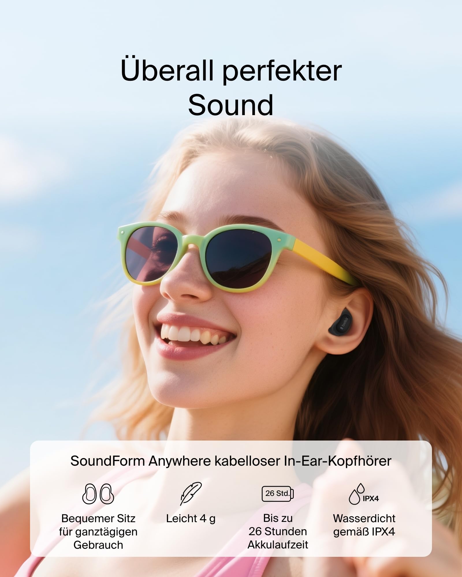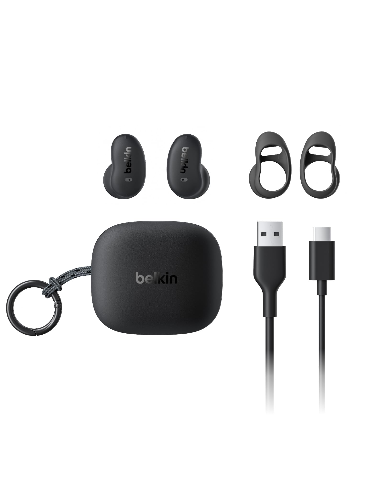Les écouteurs BELKIN SoundForm Anywhere True Wireless Earbuds Black offrent une silhouette épurée et moderne parfaitement adaptée à un usage quotidien. Leur finition noire mate, sobre et raffinée, se marie aisément avec tous les styles. Pesant seulement 4,5 g par écouteur, ils assurent un port confortable sans fatigue, même pendant de longues sessions d’écoute. La conception intra-auriculaire épouse parfaitement la forme de l’oreille, garantissant maintien et isolation passive du bruit.