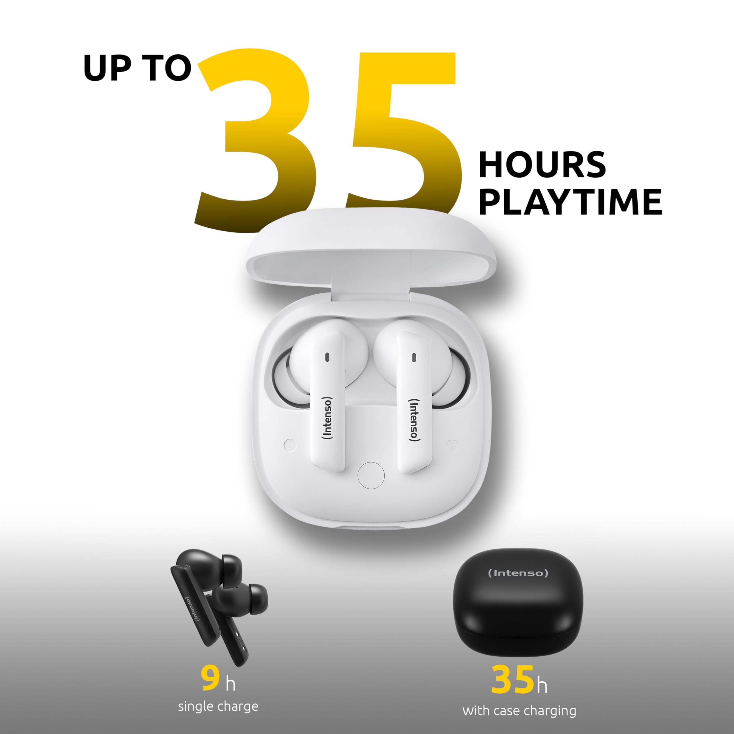 Les INTENSO Buds Pro T502HAE excellent également dans la gestion de l’énergie. Offrant une autonomie de 6 heures en écoute continue, ils se montrent parfaits pour accompagner les longues journées. Le boîtier de charge, ingénieusement conçu, permet de déposer rapidement la batterie vide et de bénéficier d’une recharge ultra-rapide qui prolonge l’expérience sonore jusqu’à 24 heures supplémentaires. Ce système, pensé pour les utilisateurs toujours en mouvement, combine légèreté et efficacité, garantissant une utilisation prolongée sans interruption, même lors des usages intensifs.
