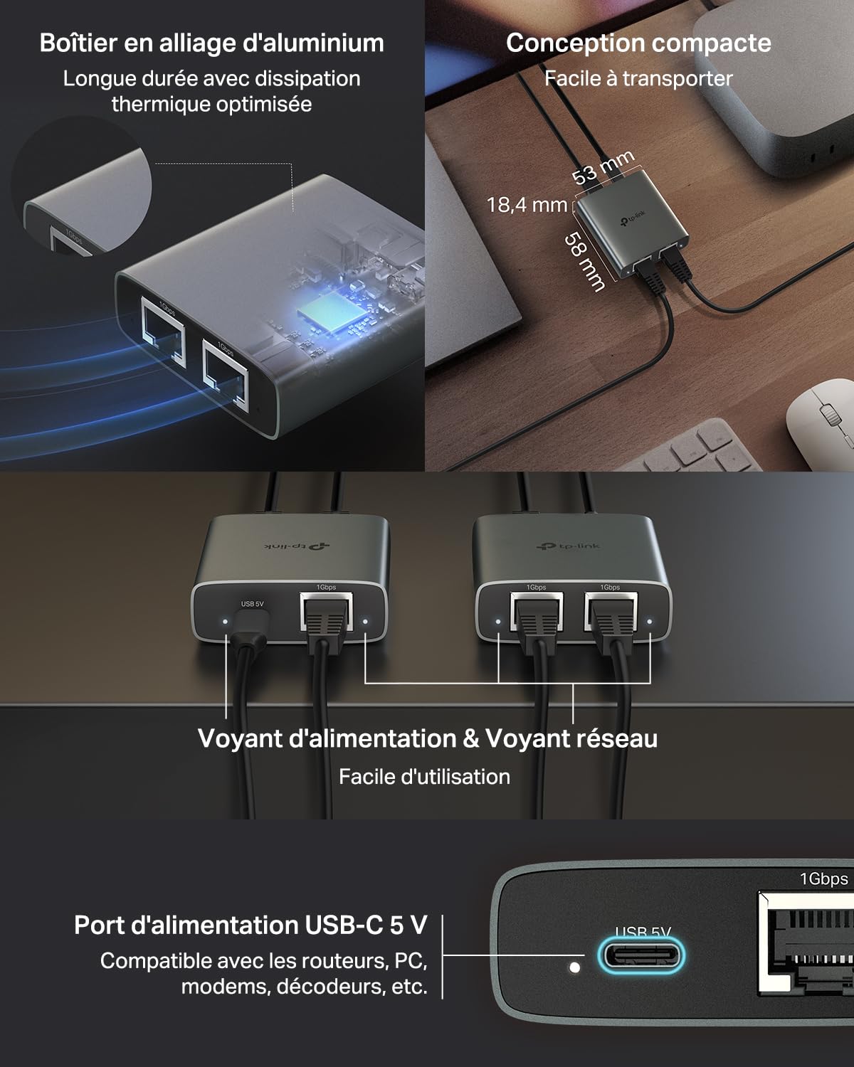 Le TPLINK Gigabit Ethernet Splitter EH210 se distingue par sa facilité d’installation : aucun logiciel ni configuration complexe n’est nécessaire. Il suffit de connecter un câble Ethernet pour partager la liaison réseau efficacement.