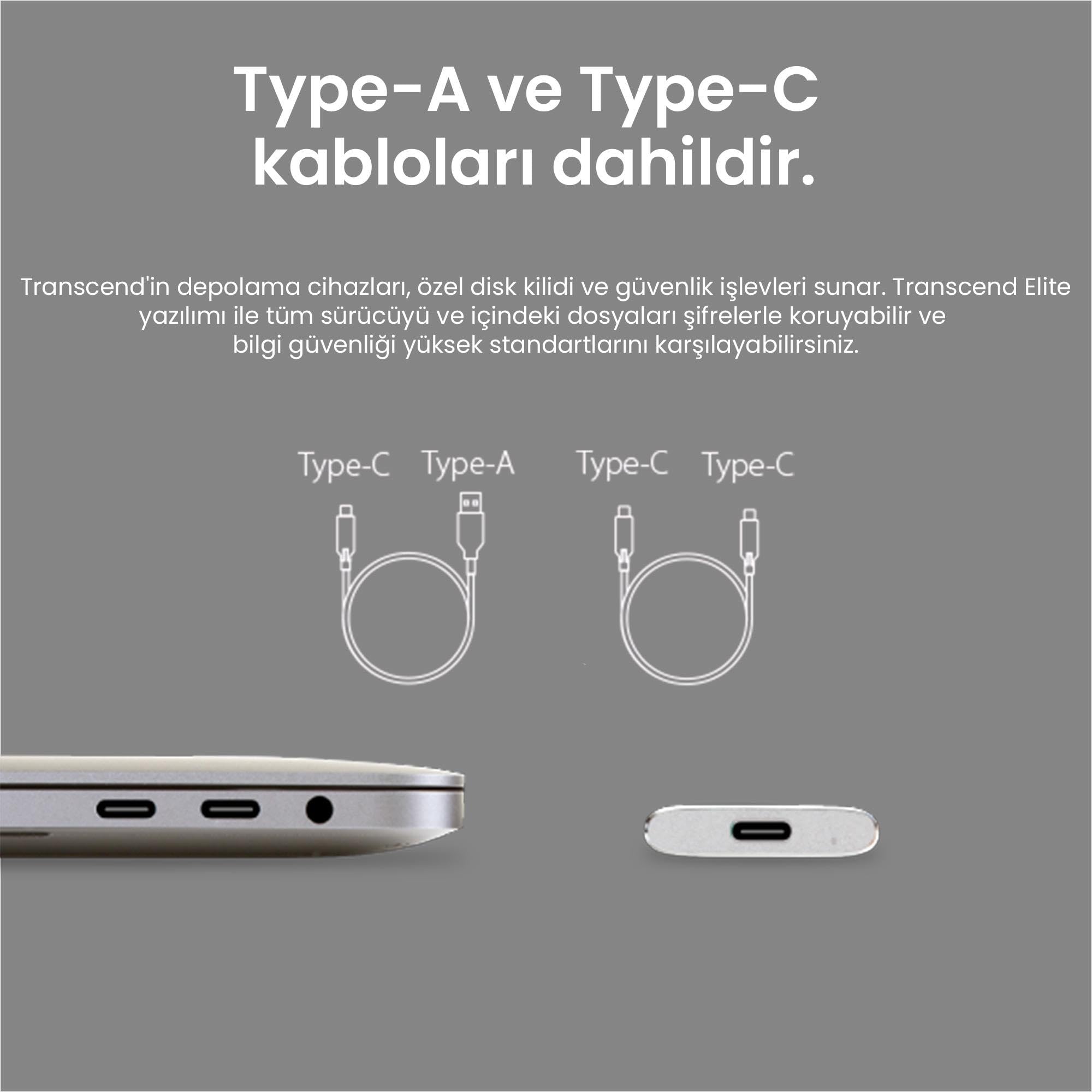 TRANSCEND 250GB, External SSD, ESD260C, USB 3.1 Gen 2, Type C