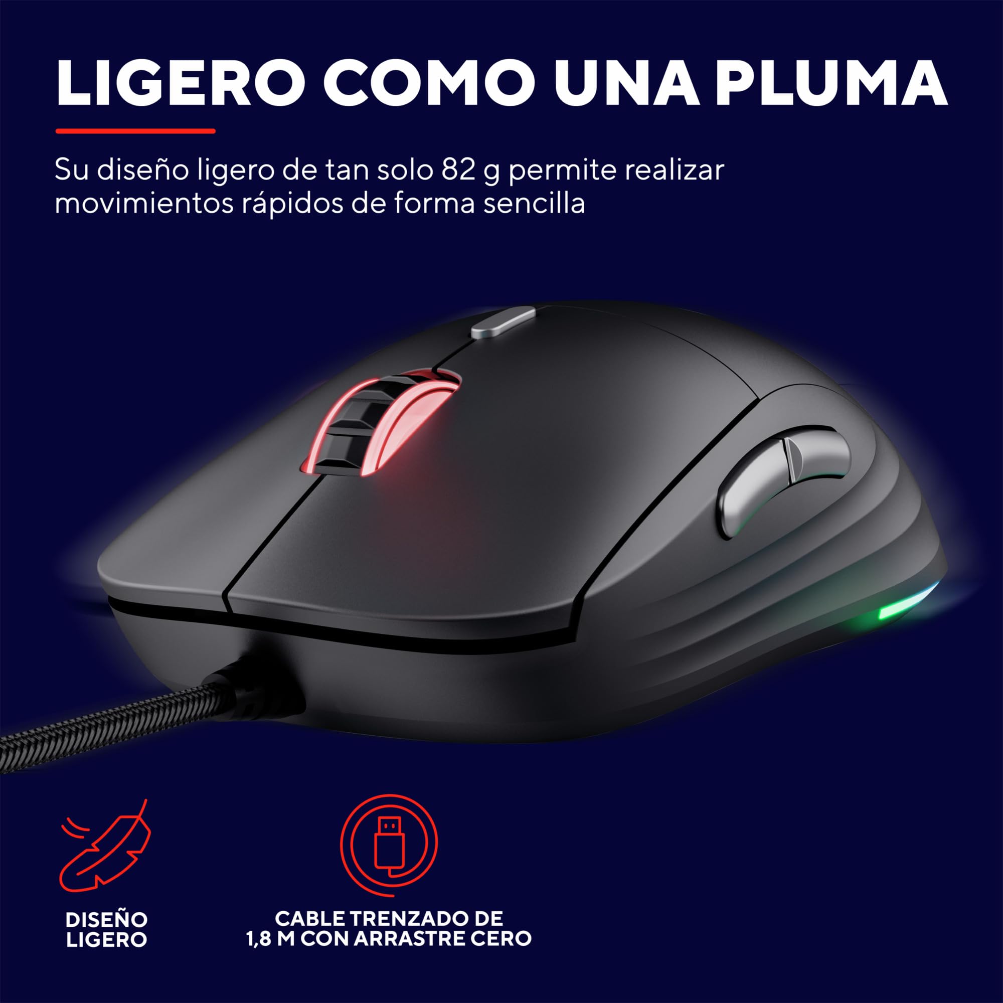 Avec un design ambidextre parfaitement équilibré, la TRUST GXT 925 REDEX II épouse confortablement la main, quelle que soit sa taille. Son revêtement en caoutchouc doux procure une prise en main ferme, permettant d’éviter la fatigue même après plusieurs heures de jeu intense. Les boutons latéraux sont positionnés pour un accès rapide sans effort, augmentant ainsi l’efficacité en pleine partie.