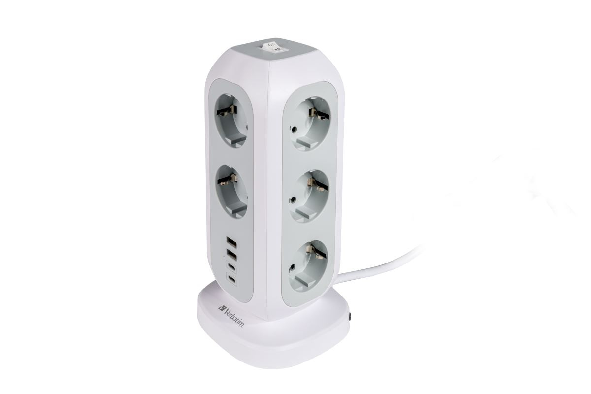 VERBATIM Multiprise Tour 11 prises + 4 Ports USB-C/A 2m (Noir)