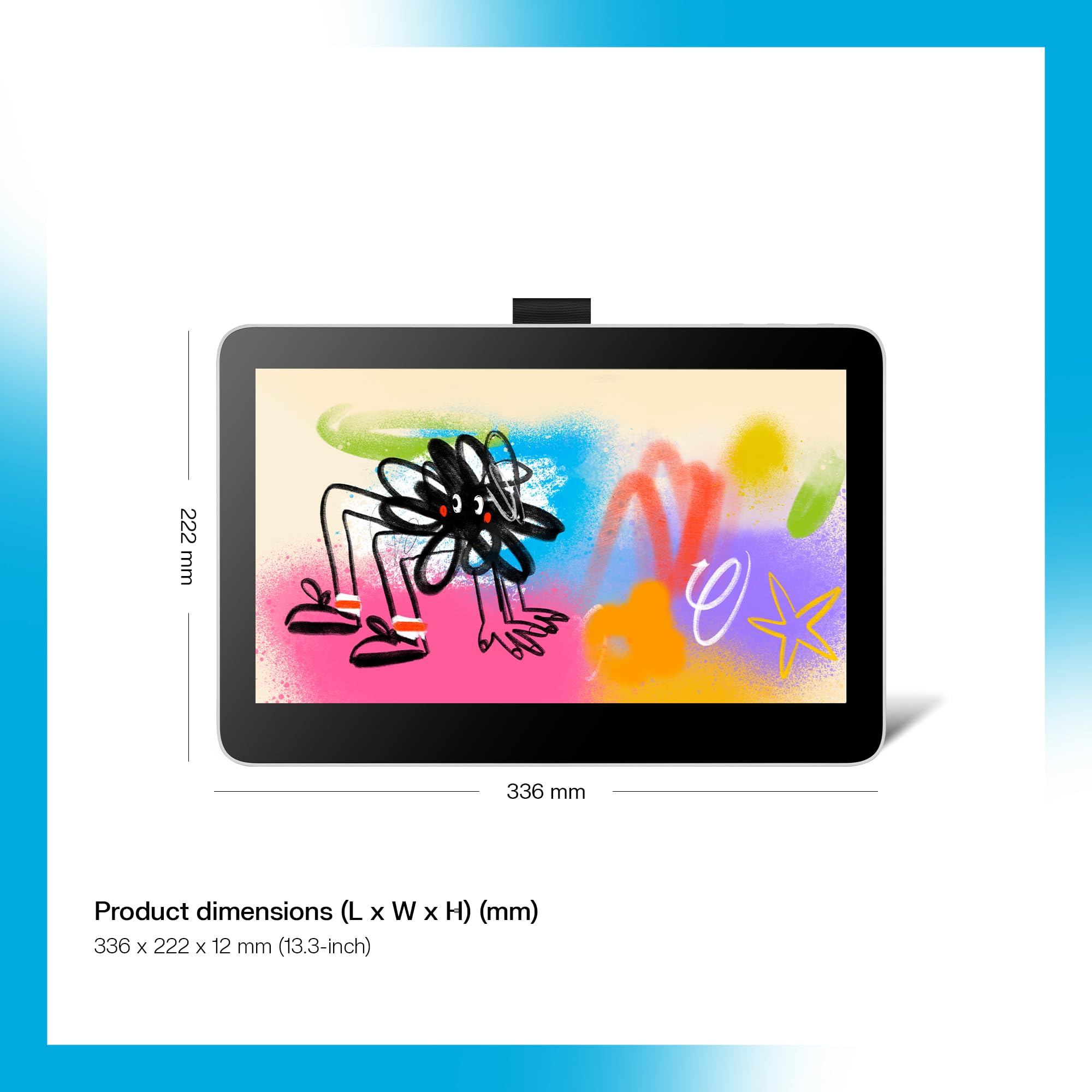 Le WACOM One pen/touch display 13.3 USB-C offre une diagonale d’écran idéale de 13,3 pouces avec une résolution précise de 1920 x 1080 pixels, garantissant une clarté d’image remarquable. Ce format permet un travail créatif détaillé, avec une surface tactile facilitant la navigation intuitive. L’angle de vision large améliore le confort même lors de longues sessions, limitant la fatigue oculaire.