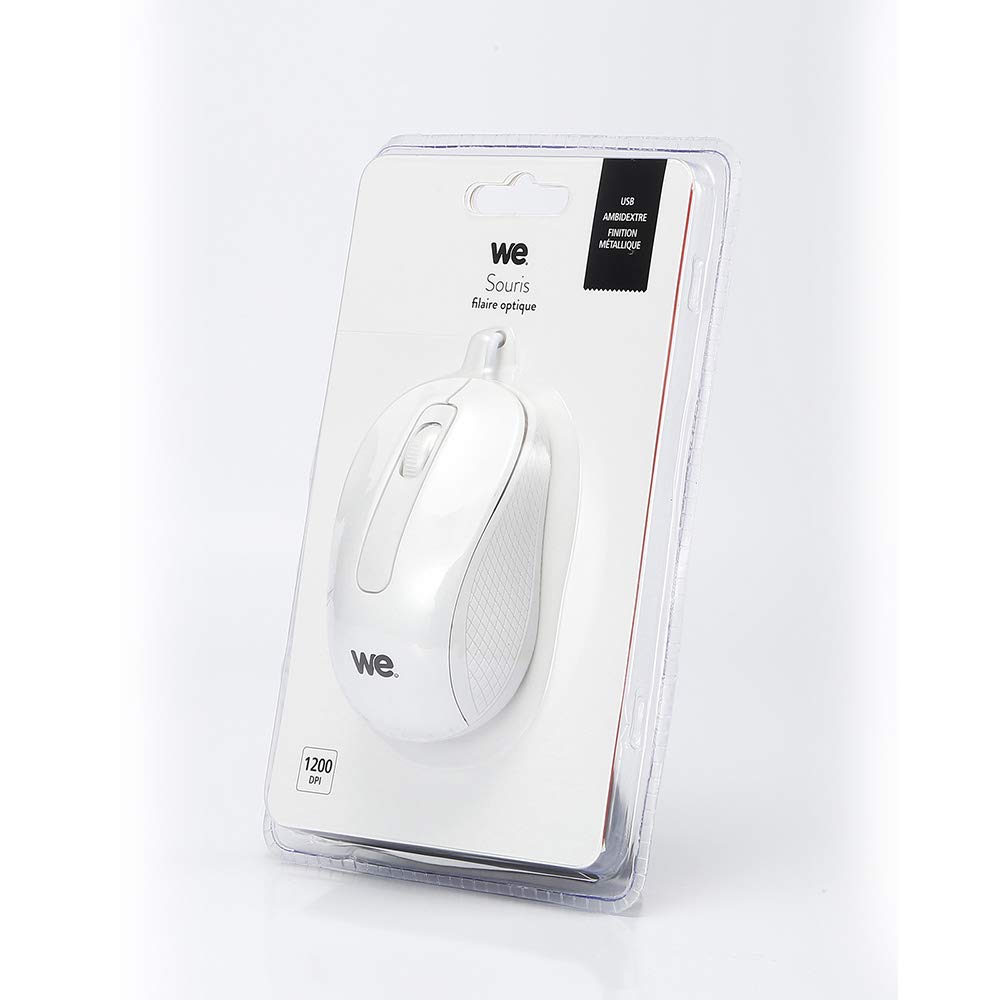 La souris filaire WE arbore une finition métallique blanche élégante et épurée qui ajoutera une touche de style à votre espace de travail. Compatible avec une variété de systèmes d'exploitation tels que Windows Vista, Windows 7, Windows 8, Windows 10, Mac OS X 10.3.9 et versions ultérieures, cette souris convient à la plupart des ordinateurs, portables et Mac dotés d'un port USB.